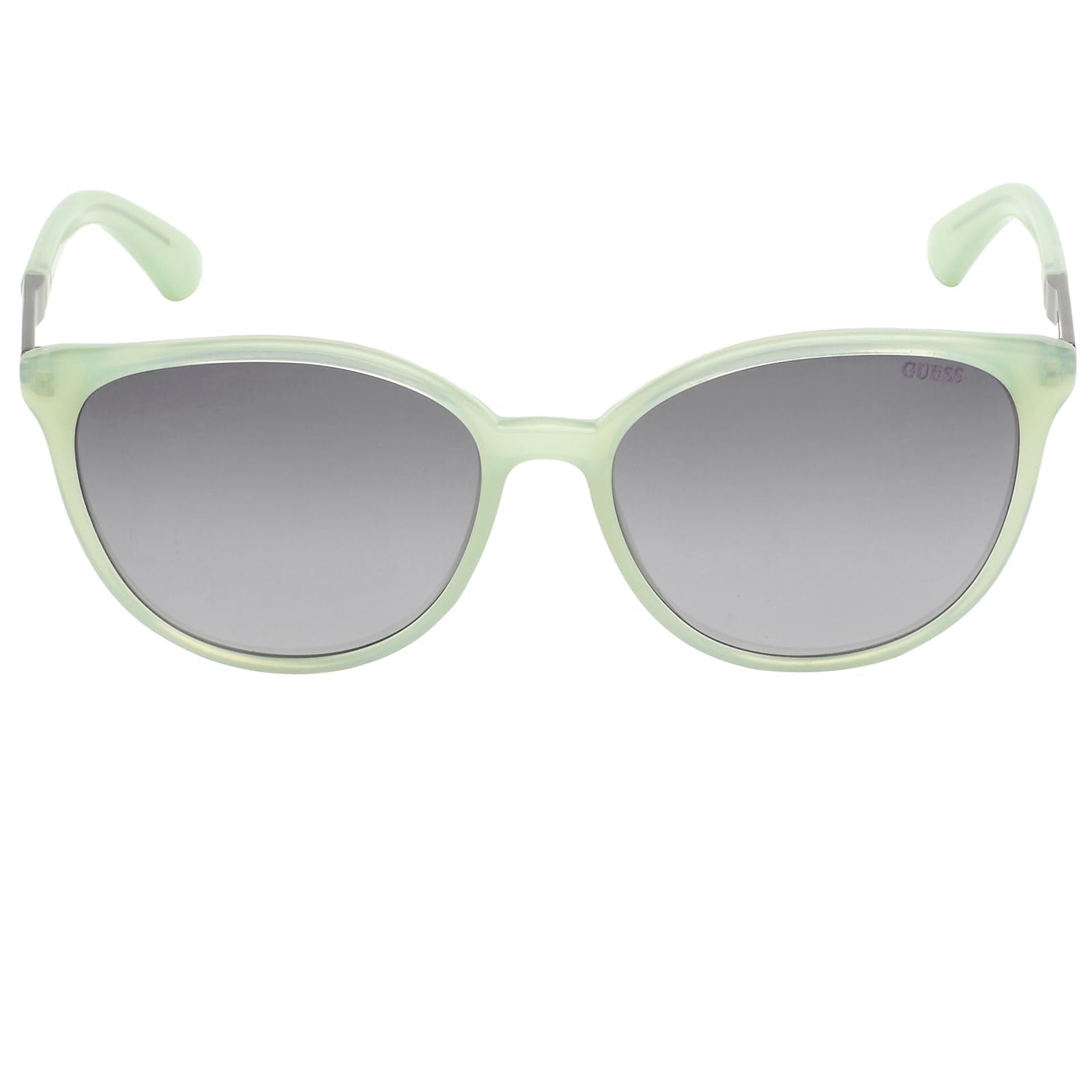 Brand GUESS sub catgeory women's Fashion polarization type non Polarized frame material Plastic shape cat eye lens color Silver lens tech mirrored.