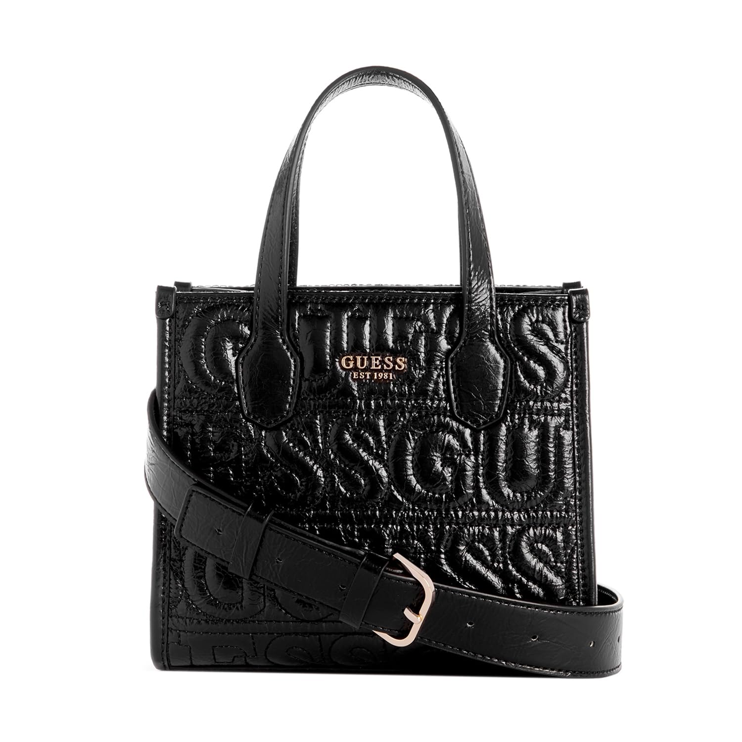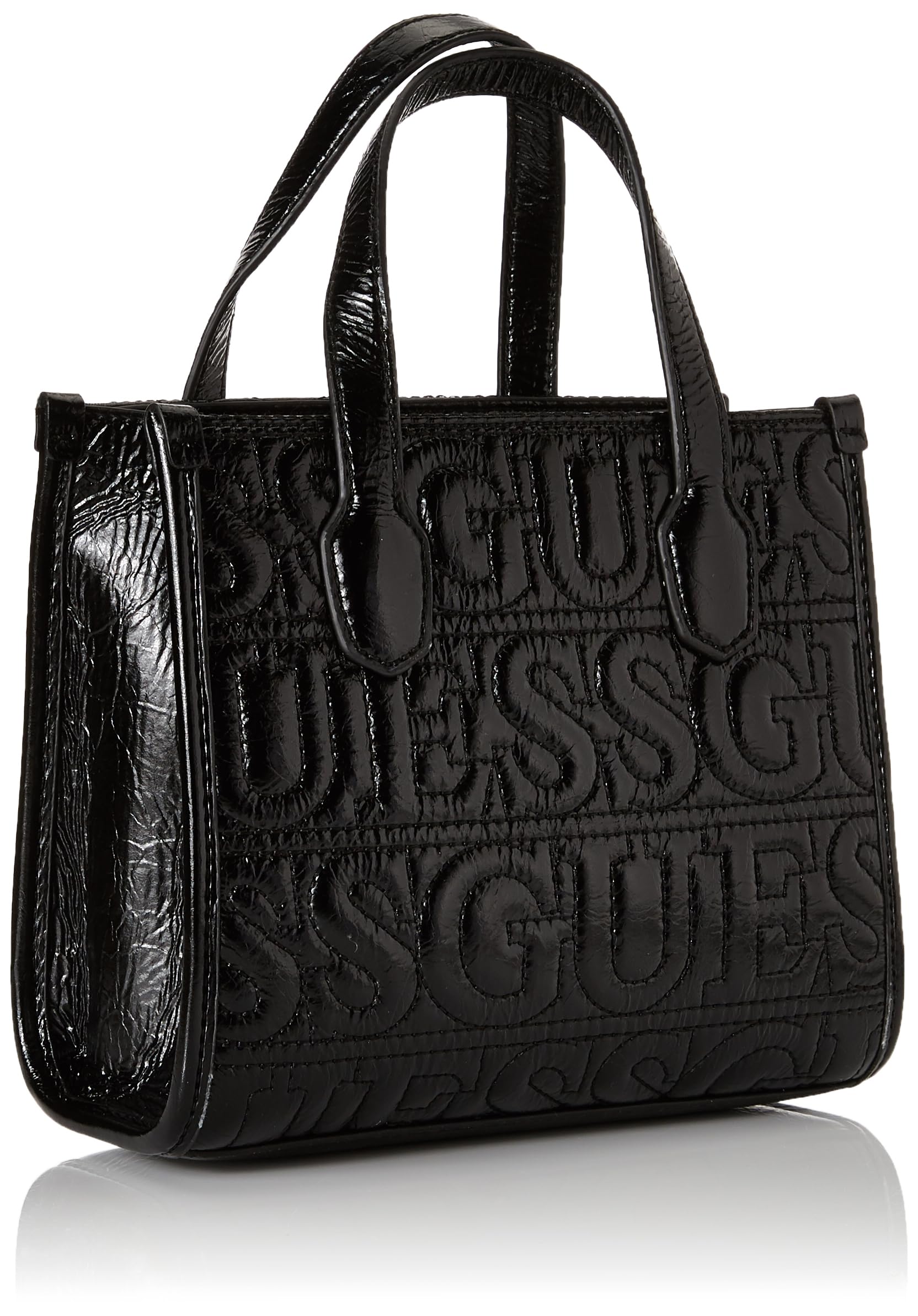 GUESS Polyurethane Black Embossed Women Silvana Mini Tote Bag