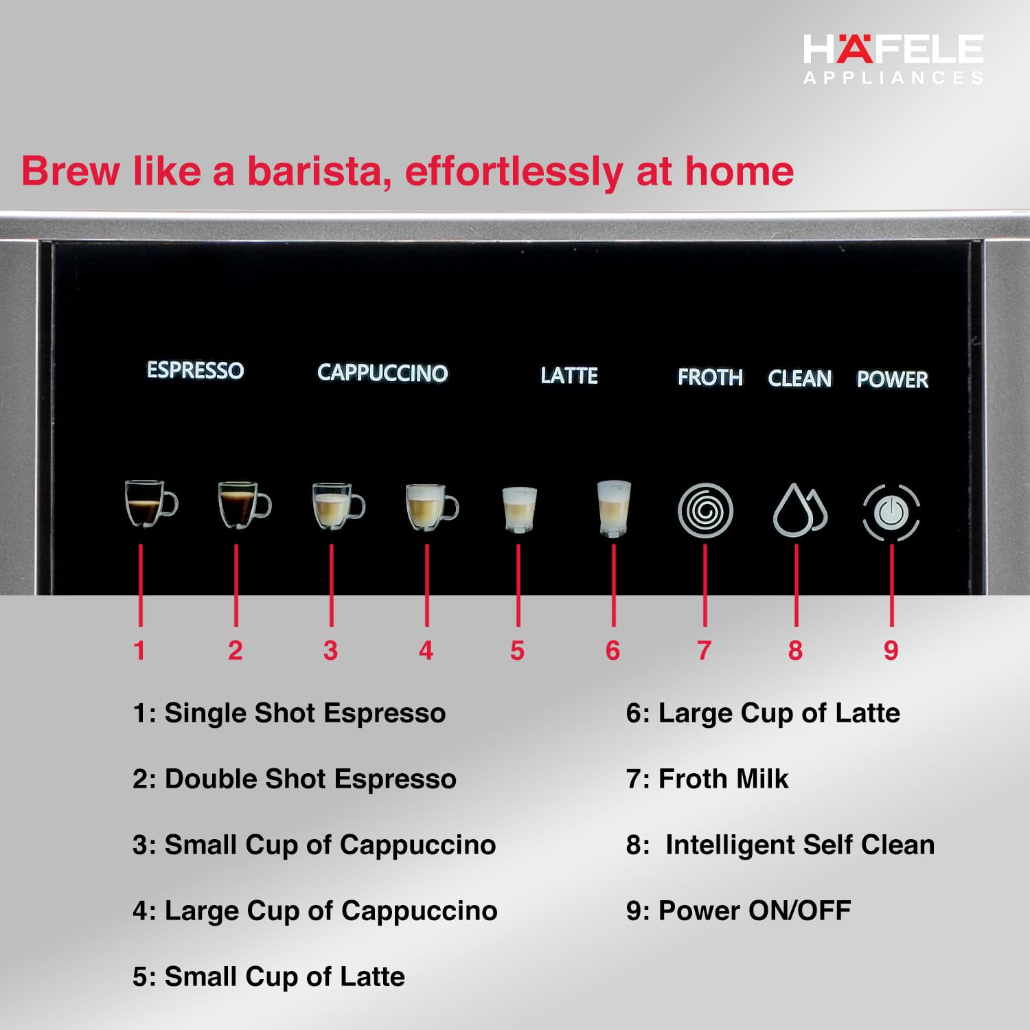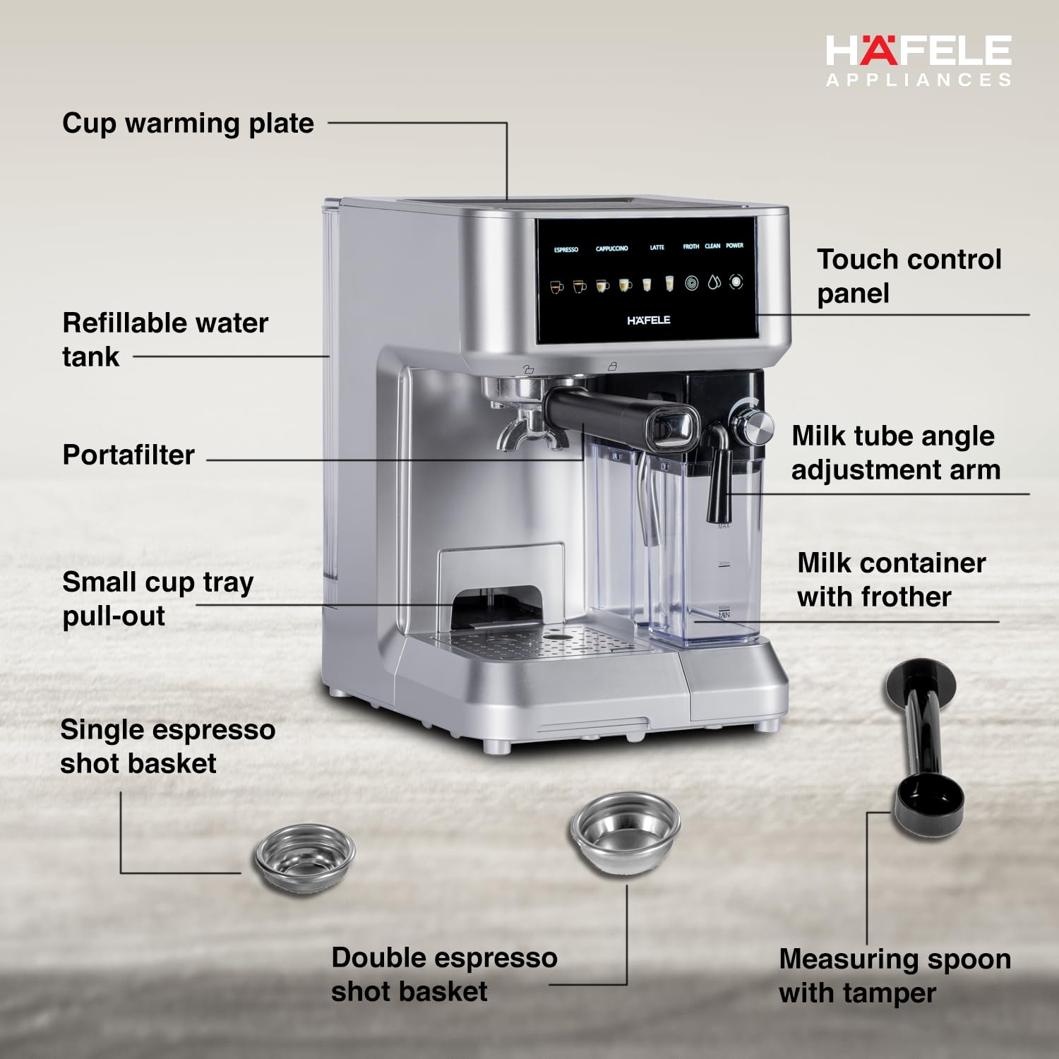 HAFELE U-Kaffee Nova Coffee Machine| 20-Bar Pump Pressure | Removable Water Tank (1.6 L)| Rapid Thermoblock Technology | Built-in Semi-automatic Cleaning | 2 Year Warranty | Silver