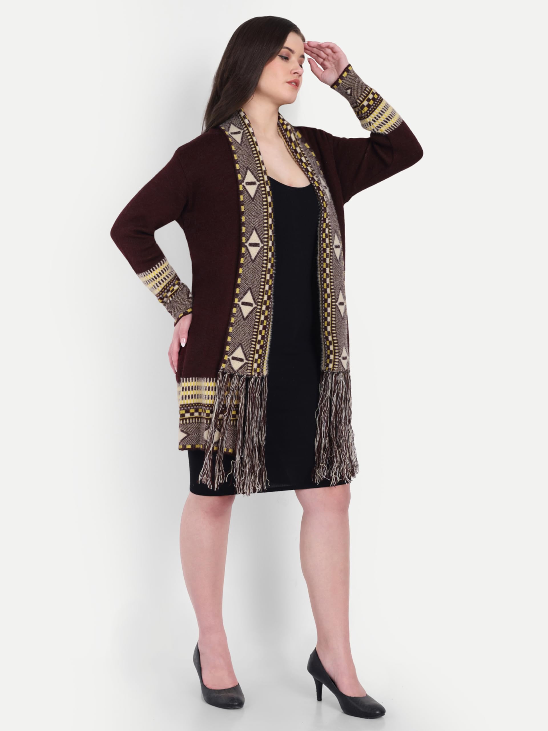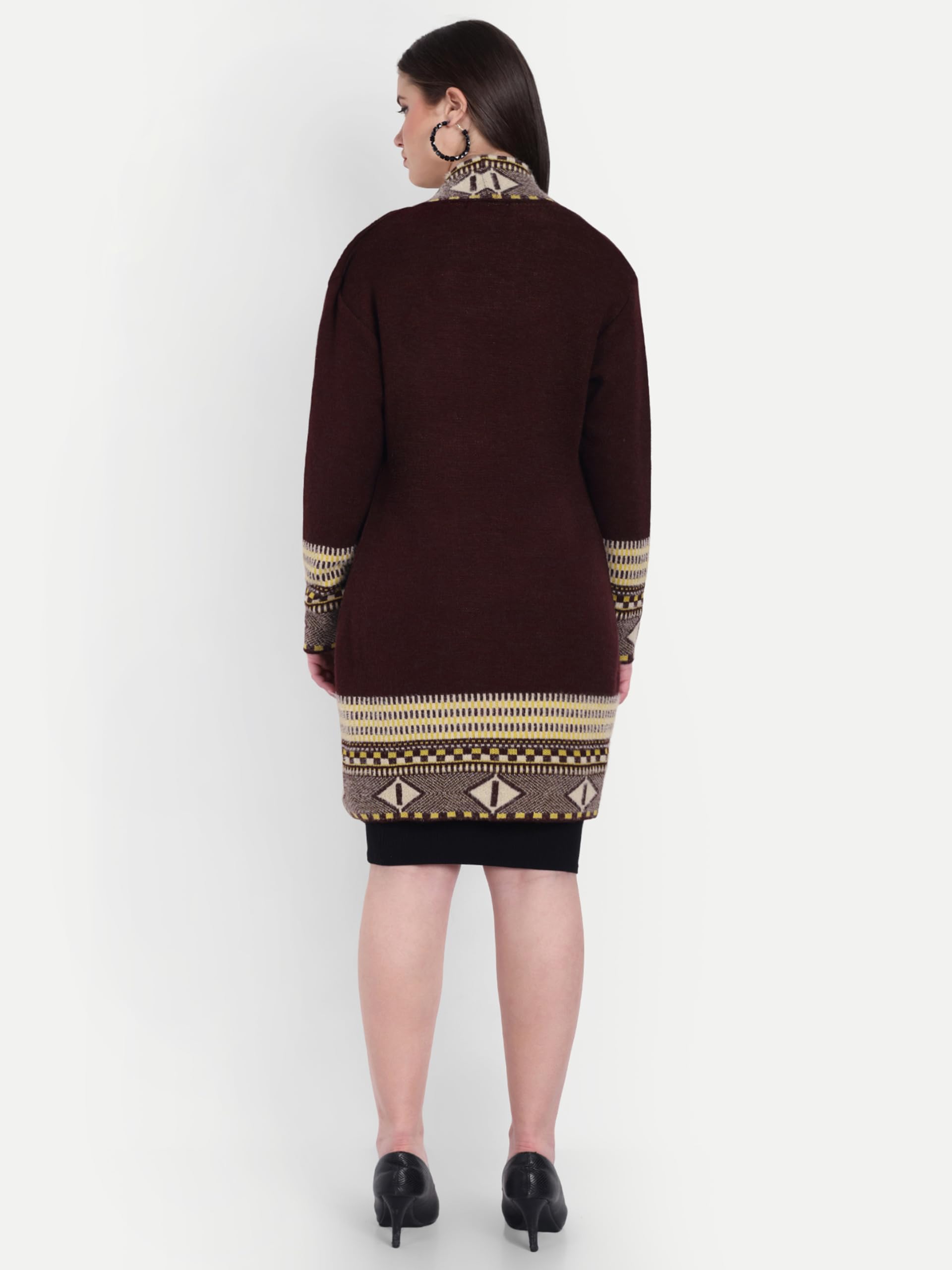 HAUTEMODA Women Winter Wear Long Front Open Sweater Shrug (in, Alpha, L, Regular, Dark Brown)