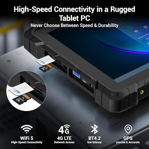 - Strong protection performance: This robust tablet is IP67 waterproof and meets the standard MIL-STD810G. It features sealed buttons and connections, shock-absorbing rubber bumpers on the corners and a sturdy body that provides extreme durability and protection. You don't have to worry about harsh conditions such as vibration, impact, falls or liquid. This tablet is ideal for field workers, architects, engineers, electricians and maintenance staff.
