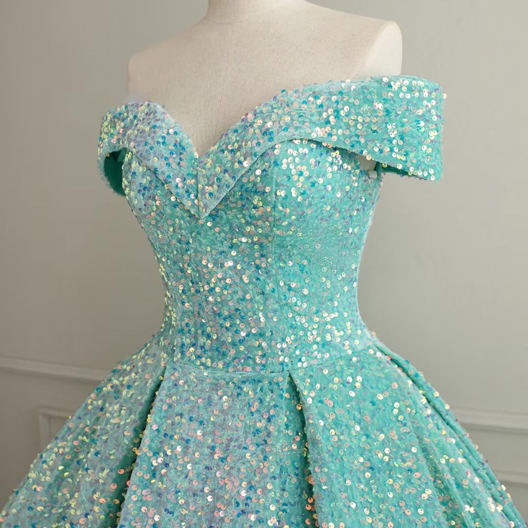 Sparkly Sequin Off Prom Dresses for Women Ball Gown A Line Formal Evening Gowns .