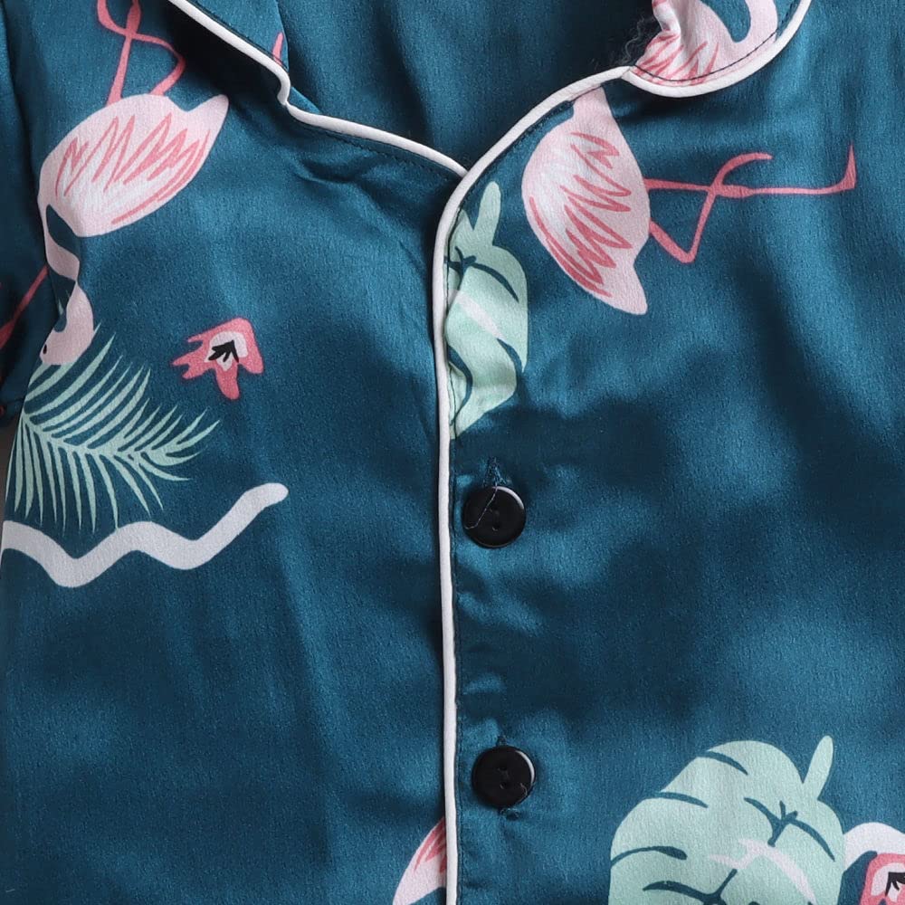Hopscotch Girls Animal Print Top Shorts Set In Green Color for Ages 3-4 Years