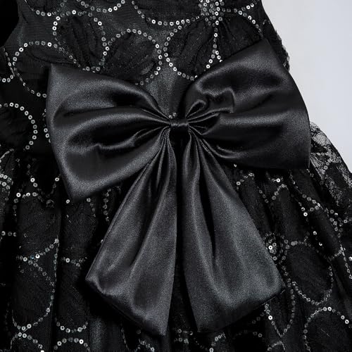 - Sparkly sequined florals create glamorous party-ready vibes! Satin bow adds versatility while matching headband completes the look. Flared silhouette twirls beautifully for dancing. Perfect for celebrations where little ones want to shine and feel like princess.