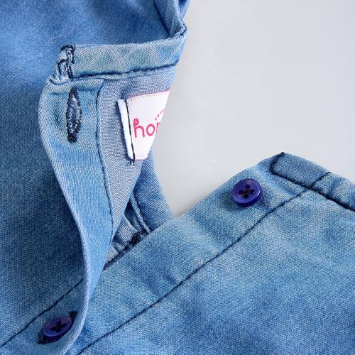 - Scattered stud embellishments and gathered bodice detail a chambray dress with matching heart-shaped crossbody for playful denim style.