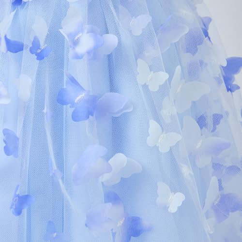 - Butterfly appliques flutter across tulle layers with cold-shoulder sleeve detail and bow accents. Matching headband adds whimsical charm to enchanted style.