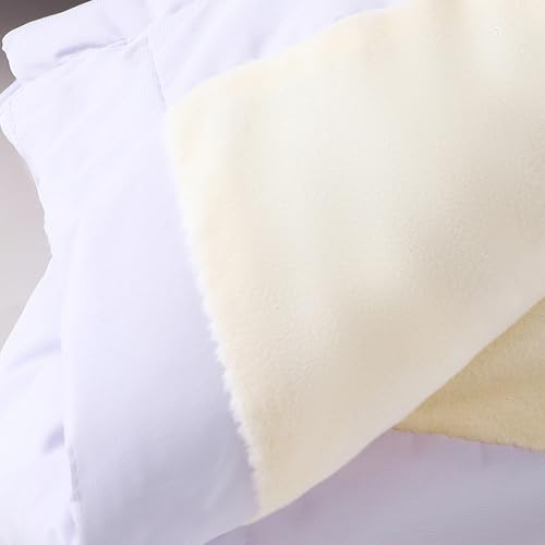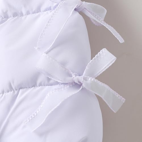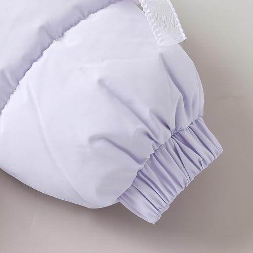 - Adorable bunny character scarf detail brings playful charm to cozy puffer styling for winter warmth with whimsical flair.