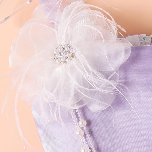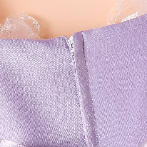 • Make your little princess feel like royalty in a stunning lilac fit-and-flare party dress featuring floral appliques, balloon hem, and bead embellishments.