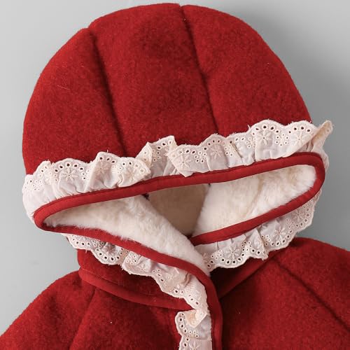 Hopscotch Girls Red Full Sleeves Heart Applique Long Coat For Age (18-24 Months)
