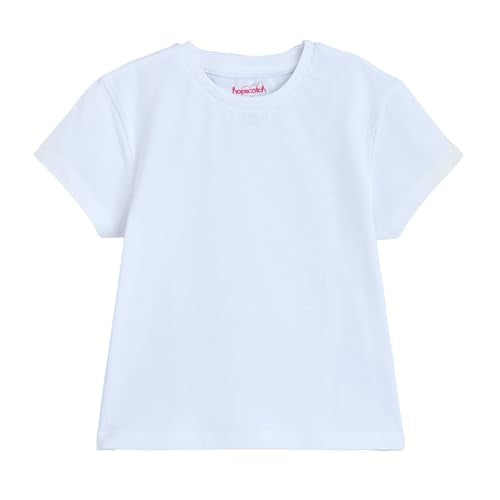 Hopscotch Girls White Short Sleeves Pure Cotton Basic T-Shirt for Ages(3-4 Years)