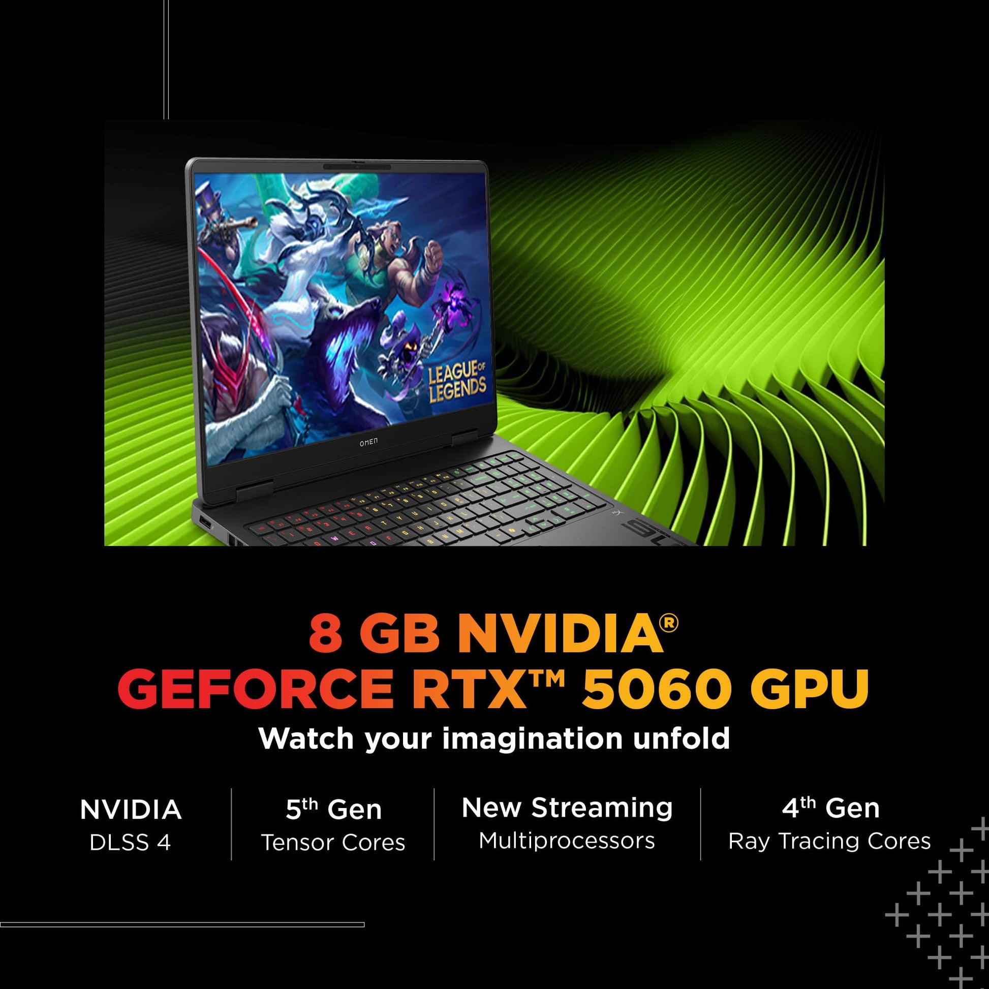 • Display & Graphics: 40.6 cm (16") diagonal, 2K (1920 x 1200), 60-165 Hz, 3 ms response time, IPS, micro-edge, anti-glare, Low Blue Light, 400 nits, 100% sRGB| Graphics: NVIDIA GeForce RTX 5060 Generation Laptop GPU (8 GB GDDR7 dedicated)