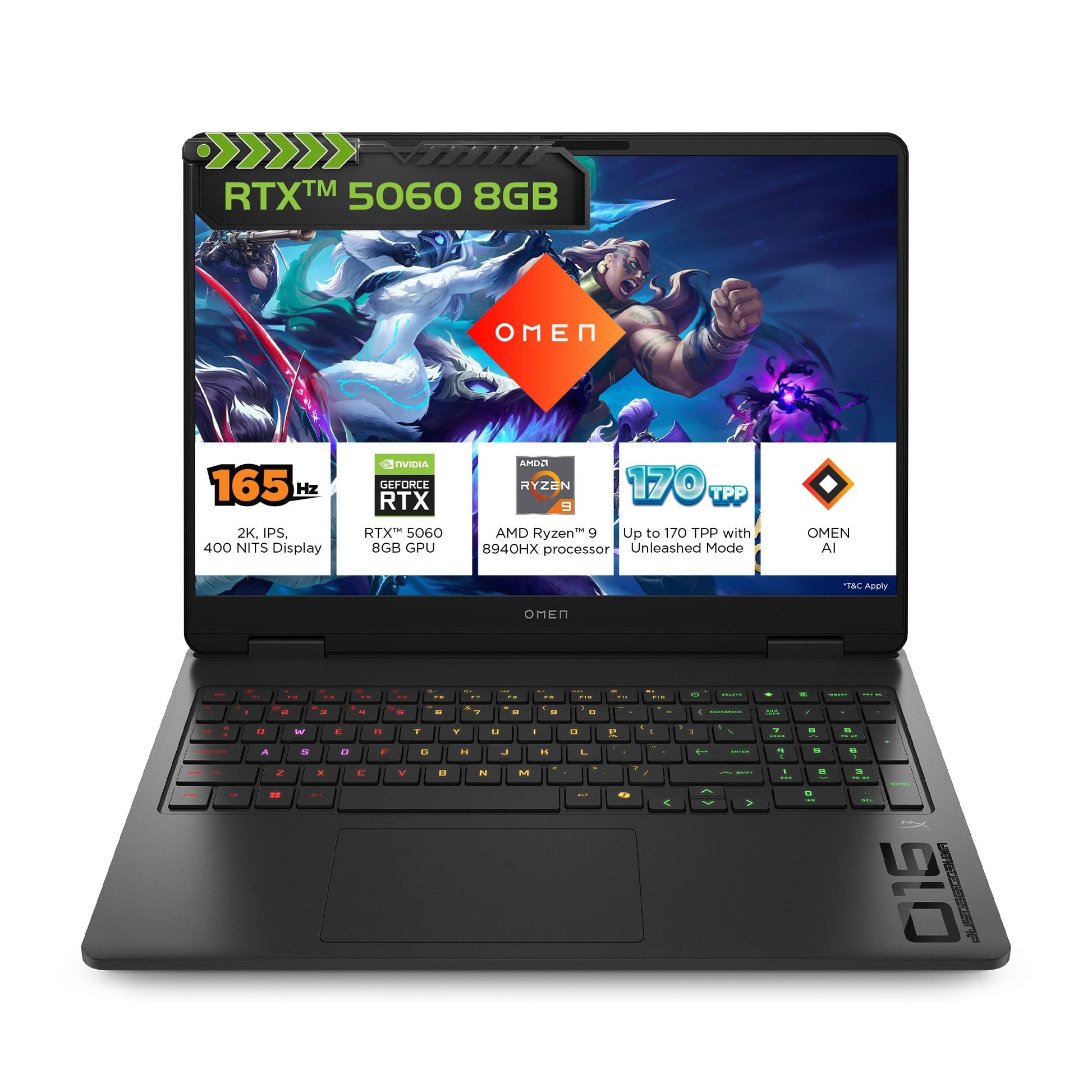 HP Omen, AMD Ryzen 9 8940HX, 8GB RTX 5060, 24GB DDR5(Upgradeable) 1TB SSD, 165Hz, 2k WUXGA, 3ms, 400 nits, 16''/40.6cm, Win11, M365* Office24, Black, 2.44kg, ap0181AX, Omen AI, RGB, AI Gaming Laptop