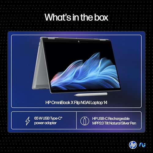 HP OmniBook X Flip (Previously Envy), Intel Core Ultra 5 226V, 40 Tops, (16GB LPDDR5X, 512GB SSD) 3K, OLED, 14''/35.6cm, Touch, Win11, Office24, Silver,1.38kg, fm0058TU, 5MP Camera, Next Gen AI Laptop