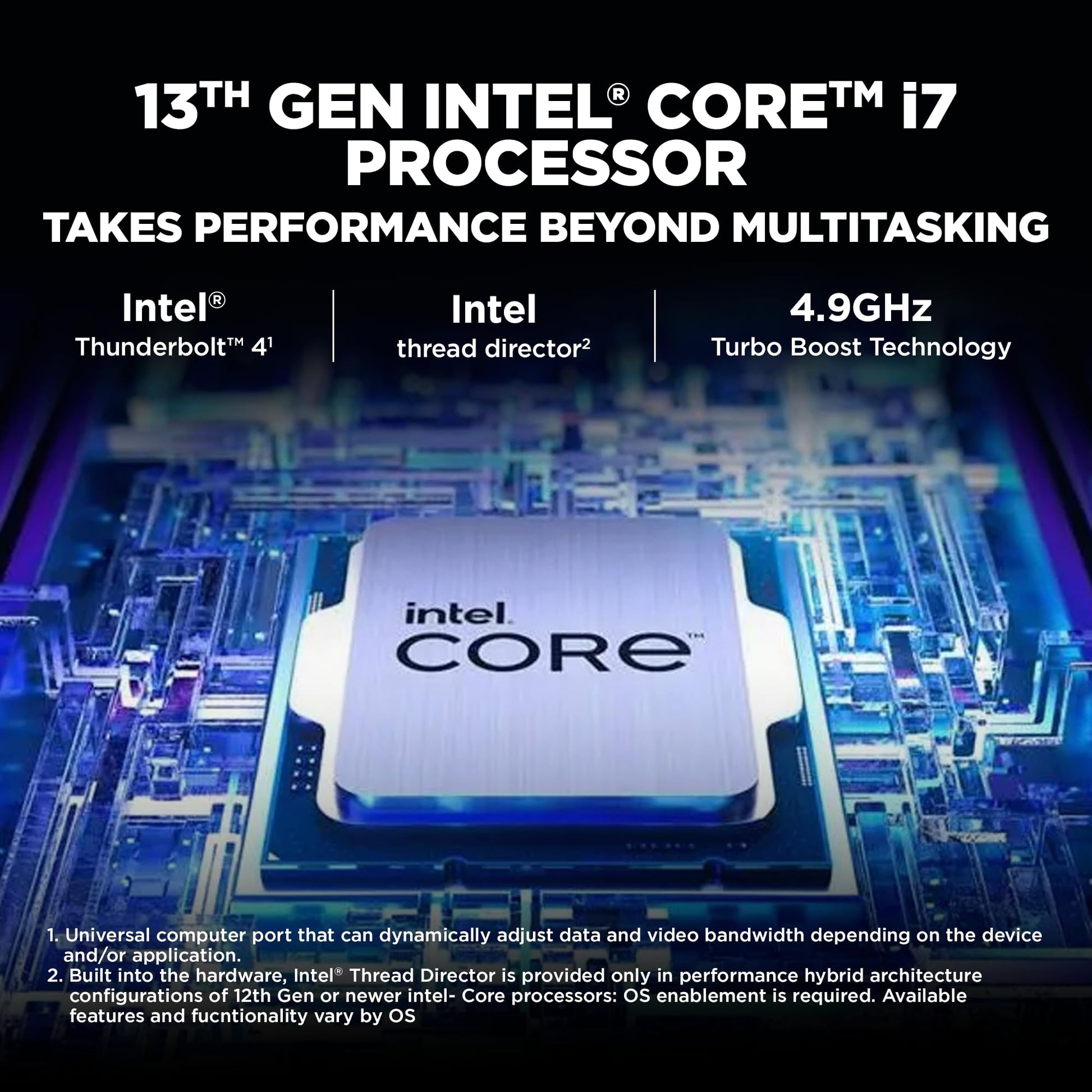 - Processor, Memory & Storage: Intel Core i7-13620H (up to 4.9 GHz with Intel Turbo Boost Technology, 24 MB L3 cache, 10 cores, 16 threads)| Memory: 24 GB DDR5-5600 MT/s (1 x 24 GB) | Storage: 1 TB PCIe NVMe SSD