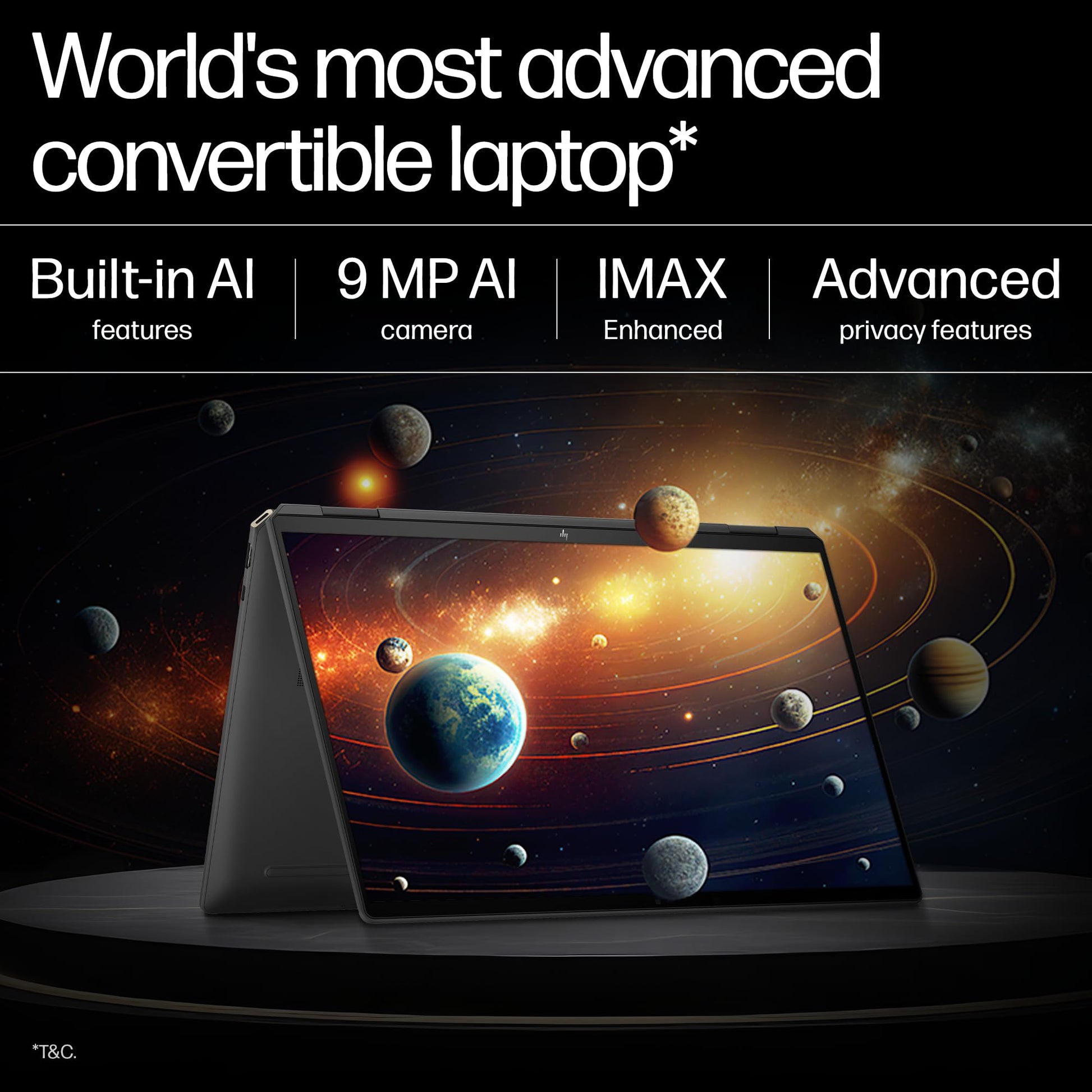 HP Spectre x360, Enhanced by AI, Intel Core Ultra 7 155H, 16-inch (40.6 cm), OLED 400 nits 120Hz, 32GB, 2TB SSD, Touch w/Pen, 9MP IR Camera w/Shutter, Poly Studio (Win 11, Black, 1.95 kg), aa0665TU