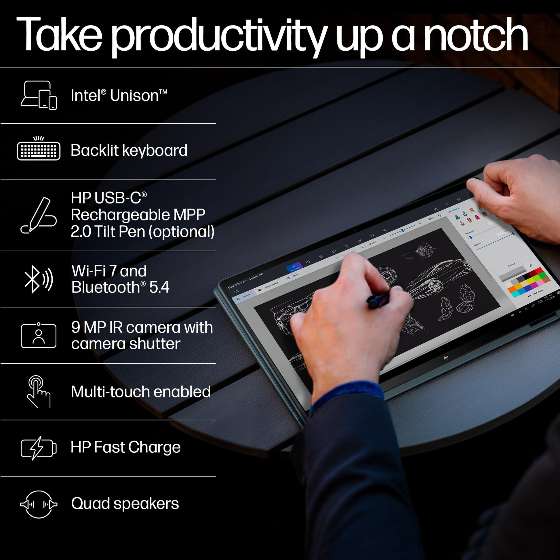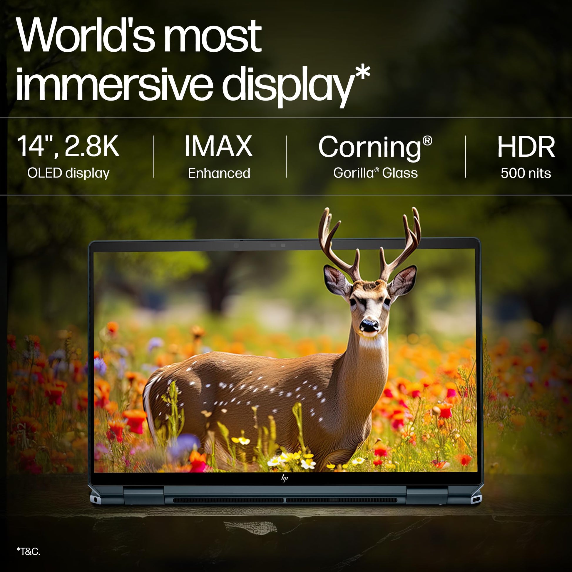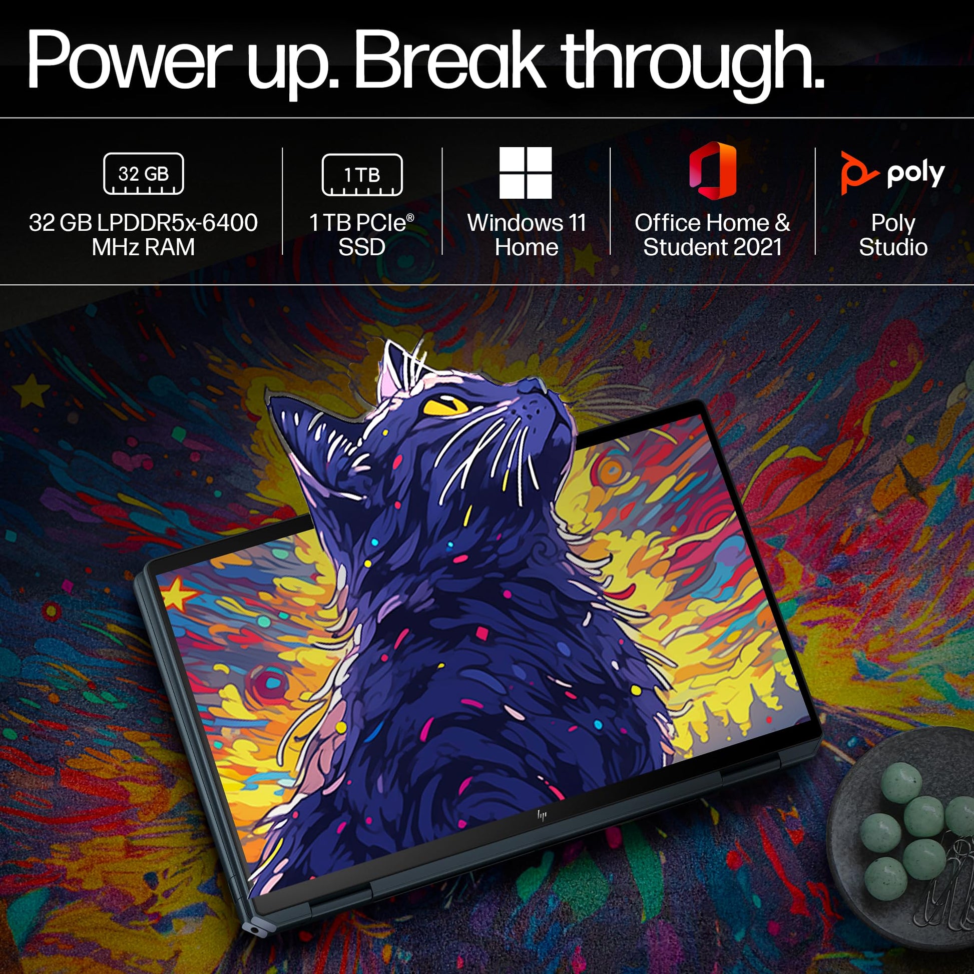 HP Spectre x360, Intel Evo Core Ultra 7 155H, Built-in AI, 14-inch (35.6 cm), 2.8K OLED, 32GB LPDDR5x, 1TB SSD, 120 Hz IMAX, 9MP IR Camera w/Camera Shutter (Win 11, MSO, Blue, 1.34 kg), eu0556TU
