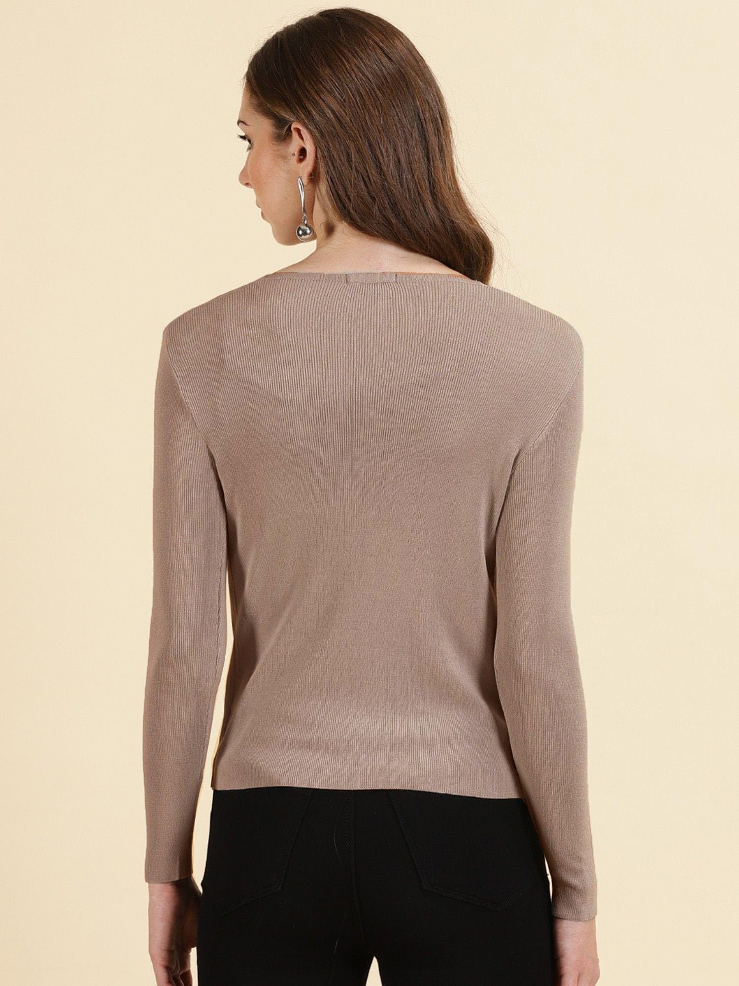 ICW Women's Acrylic Knitted Ribbed Cardigan Front-Open Top Full Sleeve Shrug Jacket for Girls ((ONE Size XS-S-M-L)(Bust Size 30-38 Inch) (in, Alpha, S, Regular, Nude Beige)