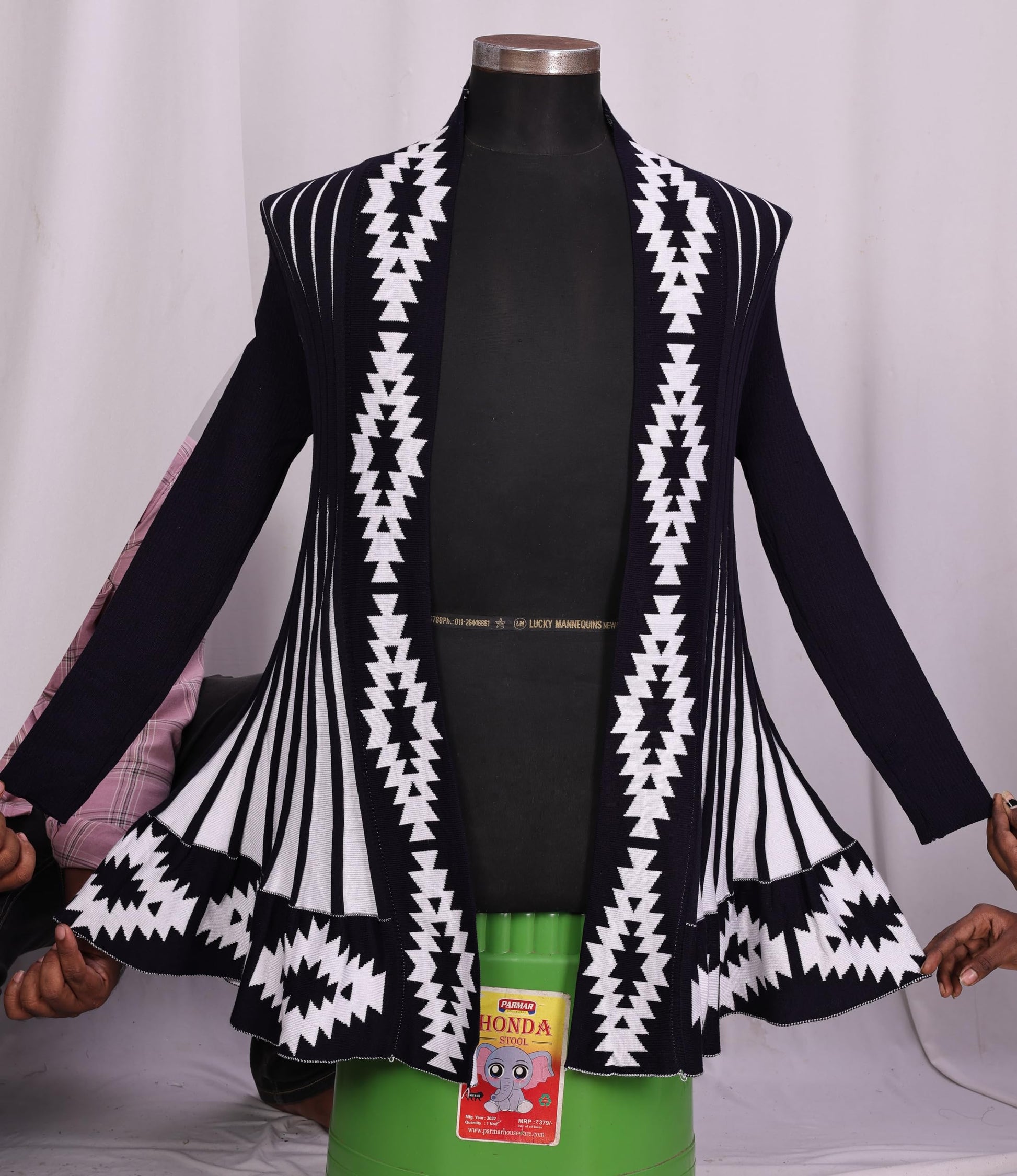 ICW Women's Knitted Stretchable Cardigan Front-Open Full Sleeve Winter Long Shrug Jacket (ONE Size FIT to 32-38 INCH Bust) (Blue 5)