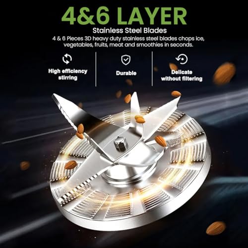 - Detachable Stainless Blades: The upgraded 6-leaf cross and 4-leaf flat blades and frothing Blade allows the smoothie maker & grinder to blend and extract nutrients easily. Detachable blades are easy to clean.