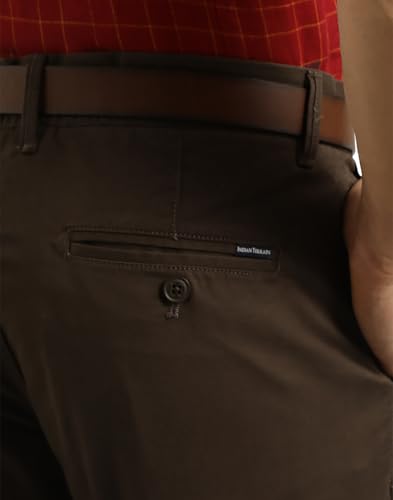 Indian Terrain Men's Brown Cotton Slim Fit Casual Trousers