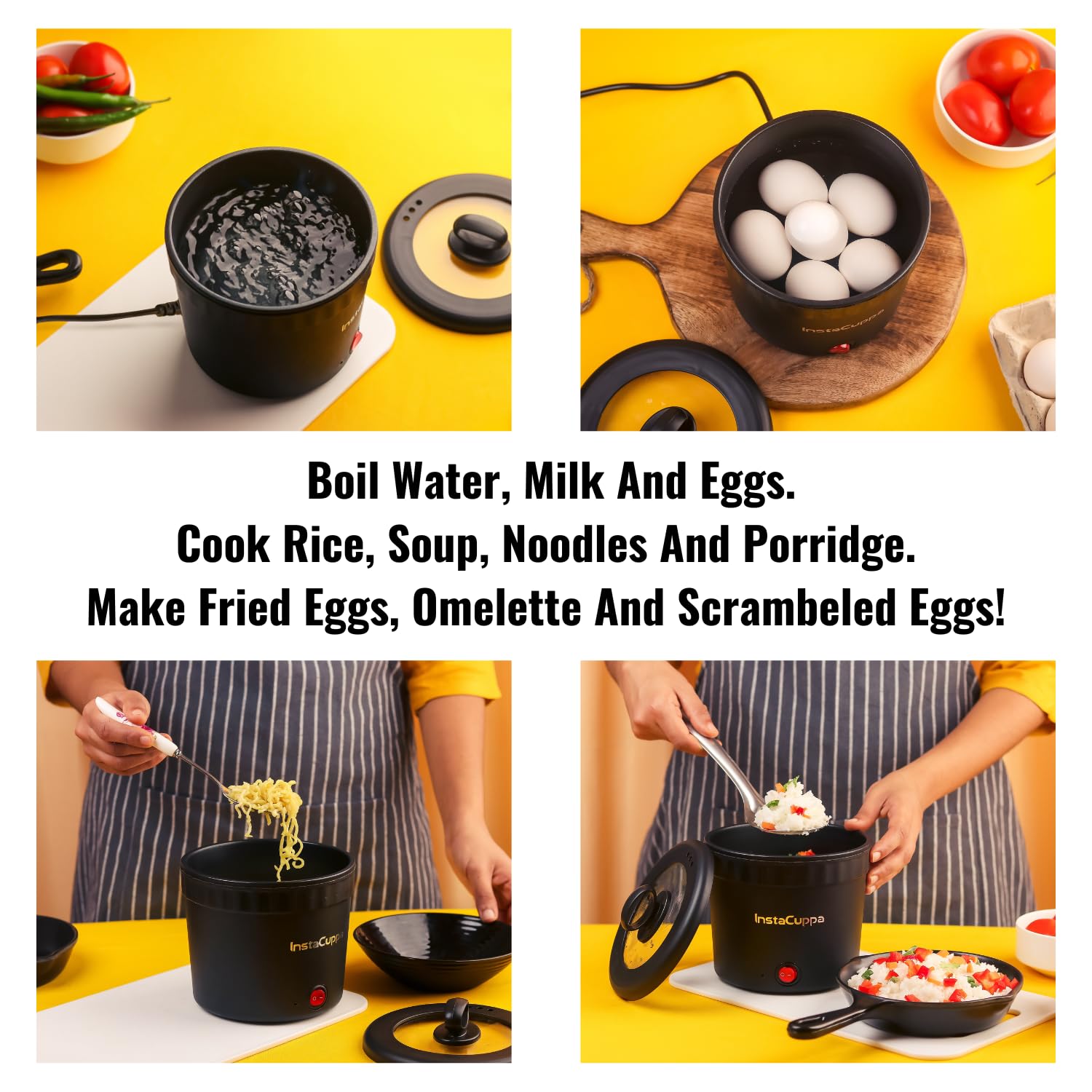 InstaCuppa Portable Multi Cook Electric Kettle with Non-Stick Inner Pot, Dry Boil Protection for Safety, Compact & Light Weight, Ideal for Boiling Milk, Tea, Coffee & Eggs, 1 Liter, 450 Watts, Black