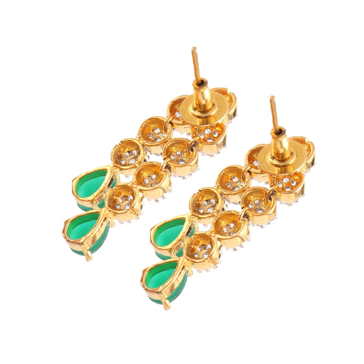 Jewar Mandi Necklace Set Ad Cz Silver Gold Plated Two Tone Gemstone Jewelry for Women & Girls (Green Emerald)