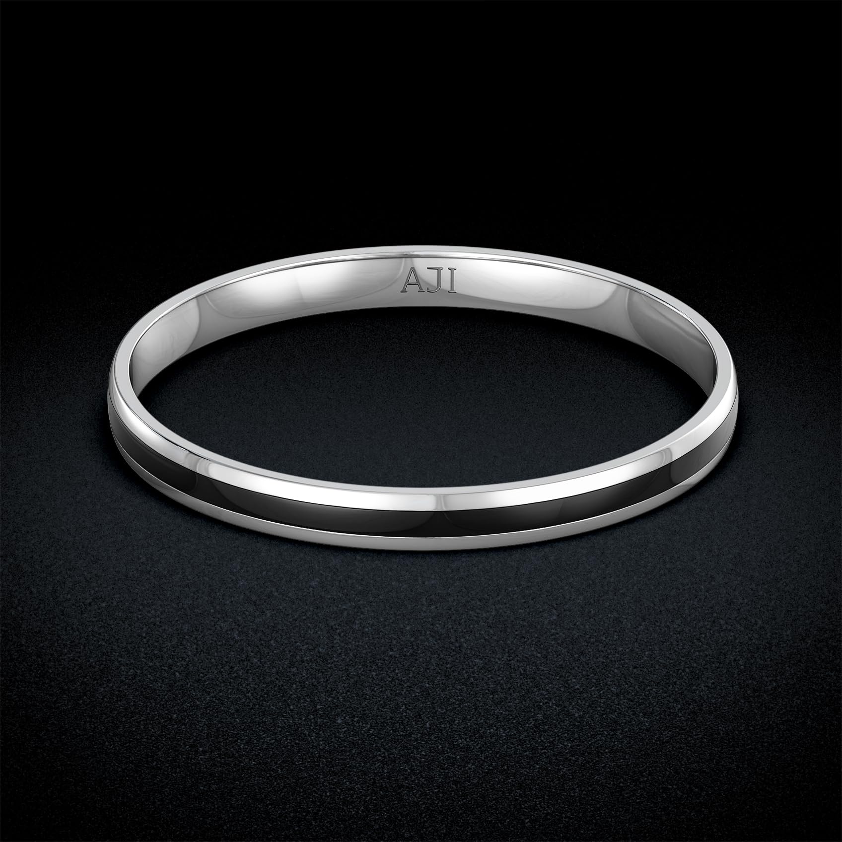 Joyalukkas 925 Purity High Polished Silver Kada/Cuff For Boy And Men (Black Color)