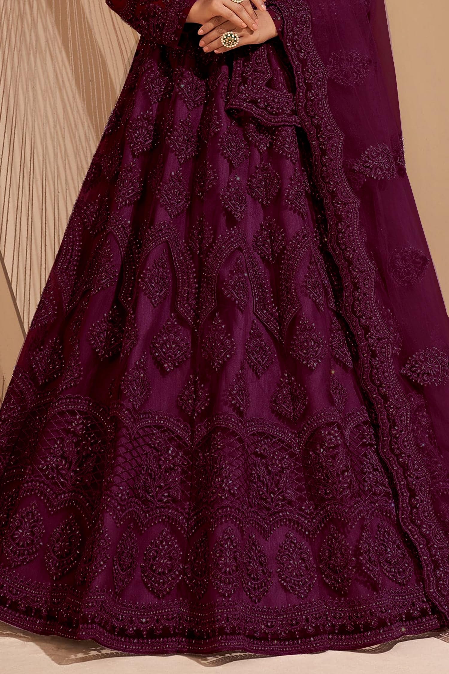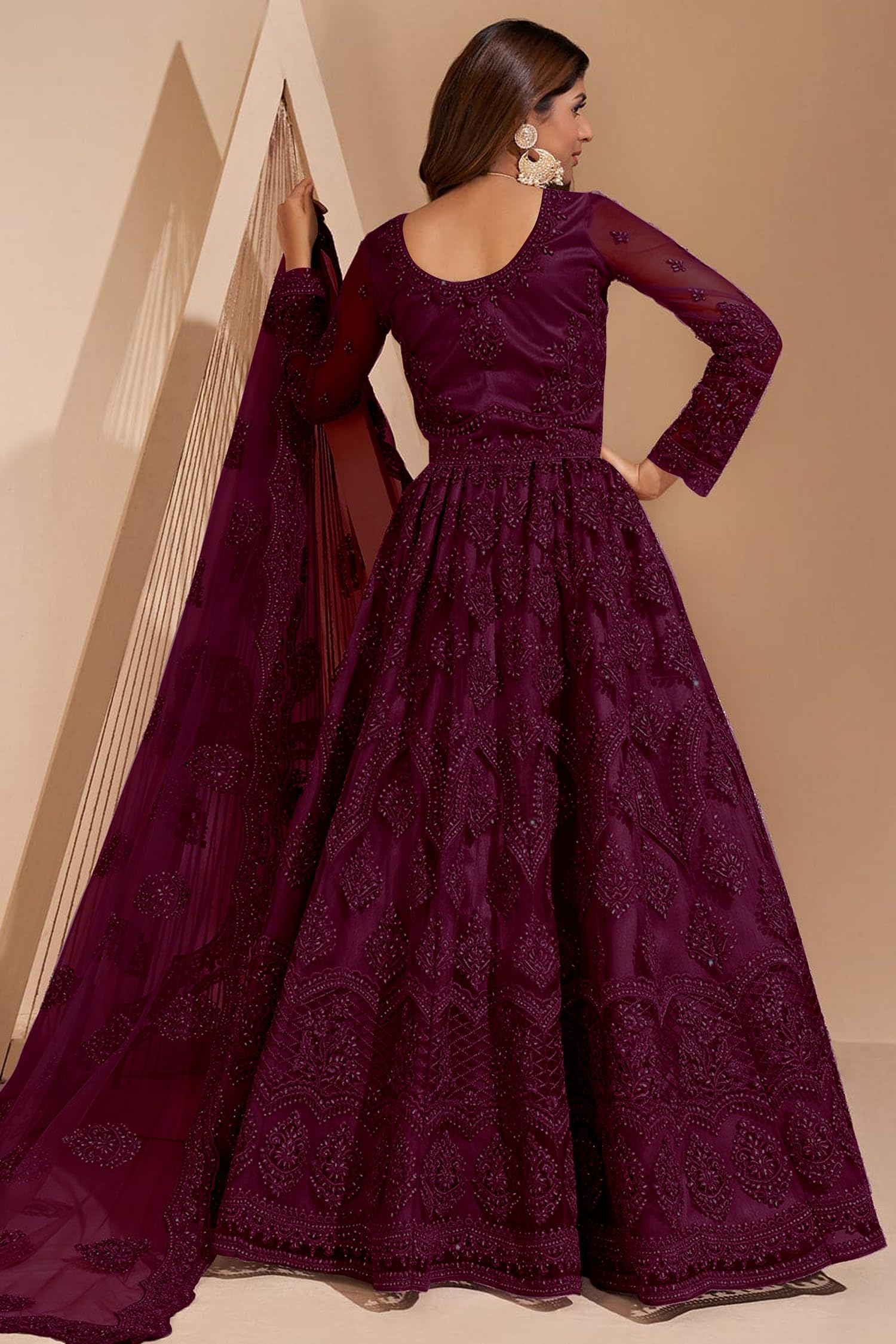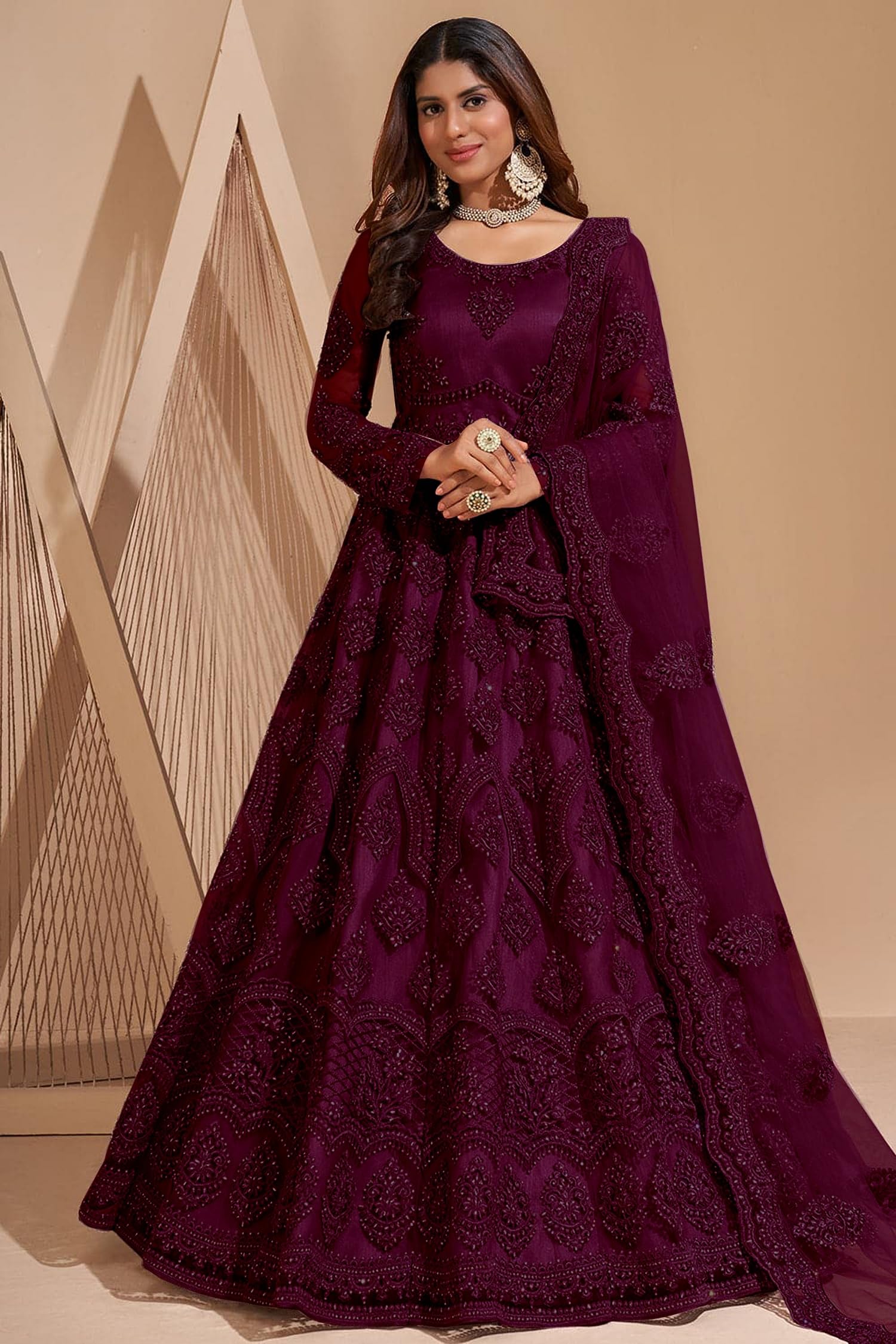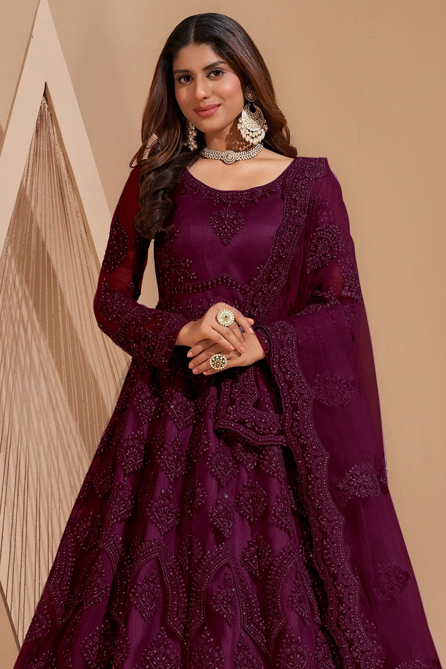 JULEE Women A-Line Maxi Net Embroidered Semi-Stitched Gown (Sunita Gown Dark Rani) 6XL