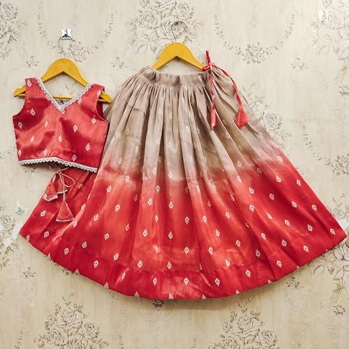 Kidsella Girls Soft Silk Printed Lehenga Choli Set | Kids Readymade Ethnic Wear | Girls Traditional Dress (Red, 3-4 Years)