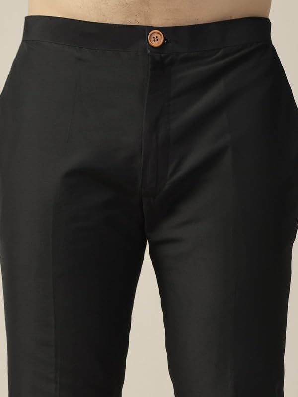 KISAH Men's Kurta Trouser Set, Black Cotton Blend, Embellished Regular Fit Mandarin Collar Full Sleeves (38)