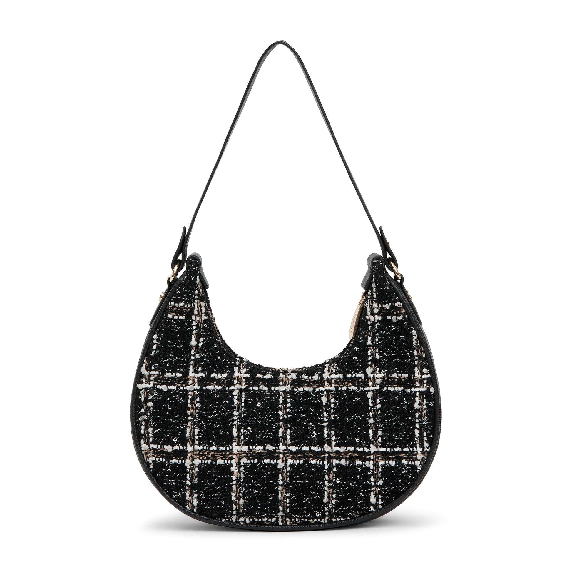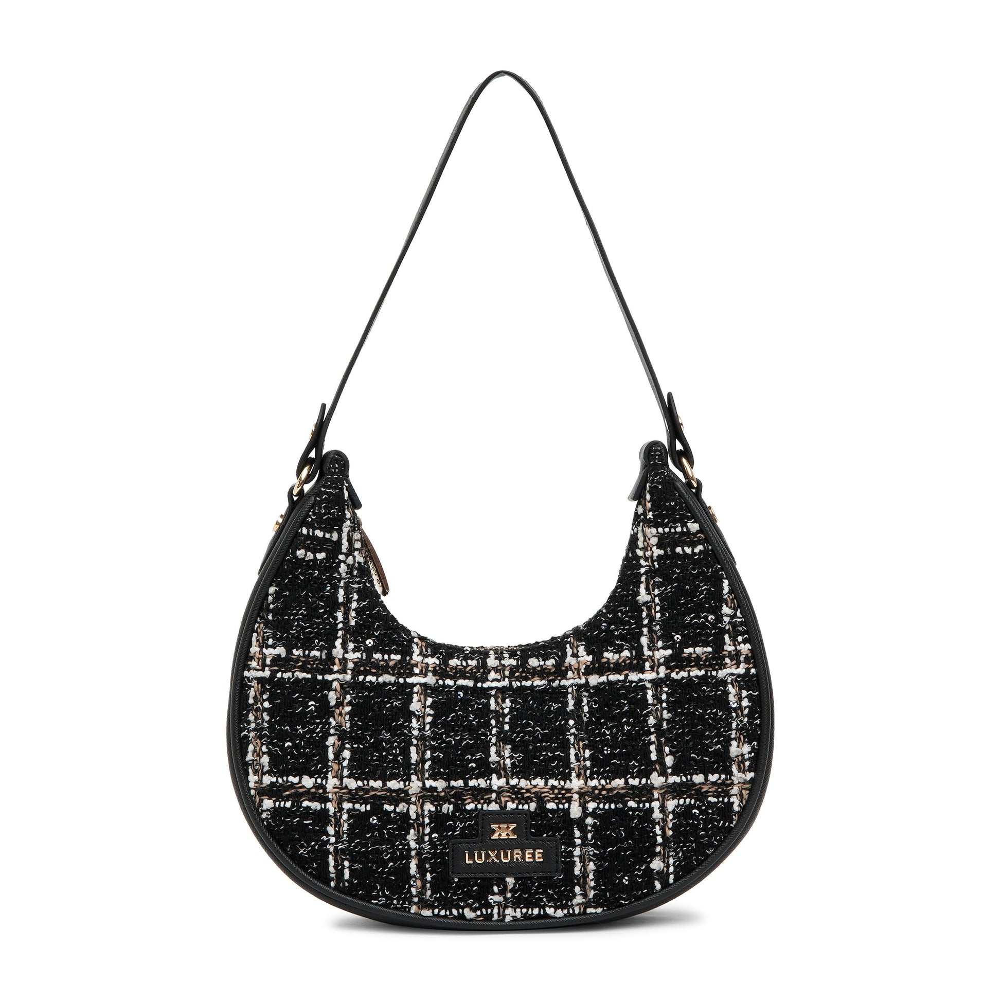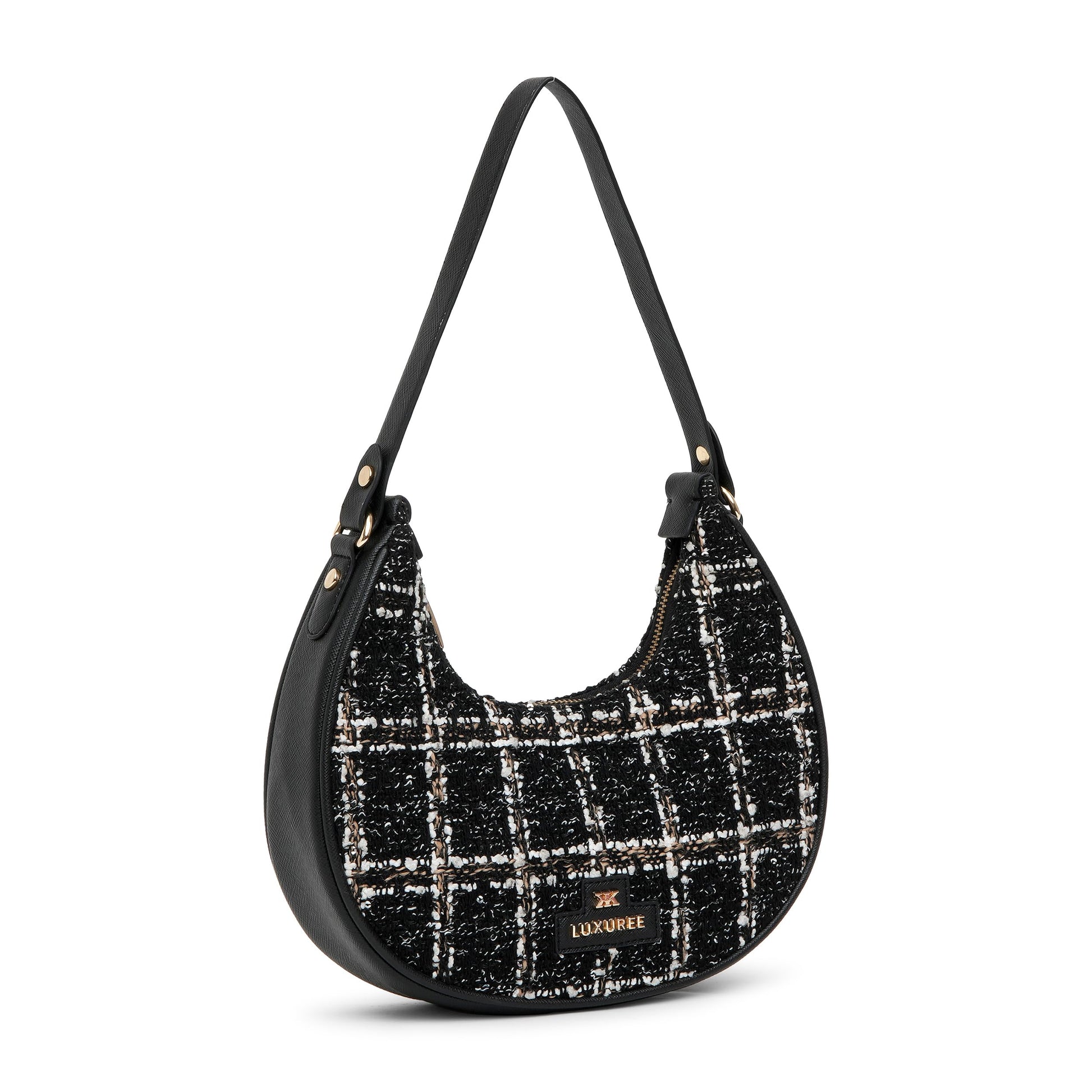 - MATERIAL & STRUCTURE: The Half Moon Tweed Shoulder Bag is designed with premium faux leather, with a luxurious saffiano texture that adds a touch of sophistication to its structure. The bag is designed for both style and functionality for todays woman. The ample space to carry your essentials and a secure zip closure for added convenience is designed for modern women who are in love with stylish handbags.