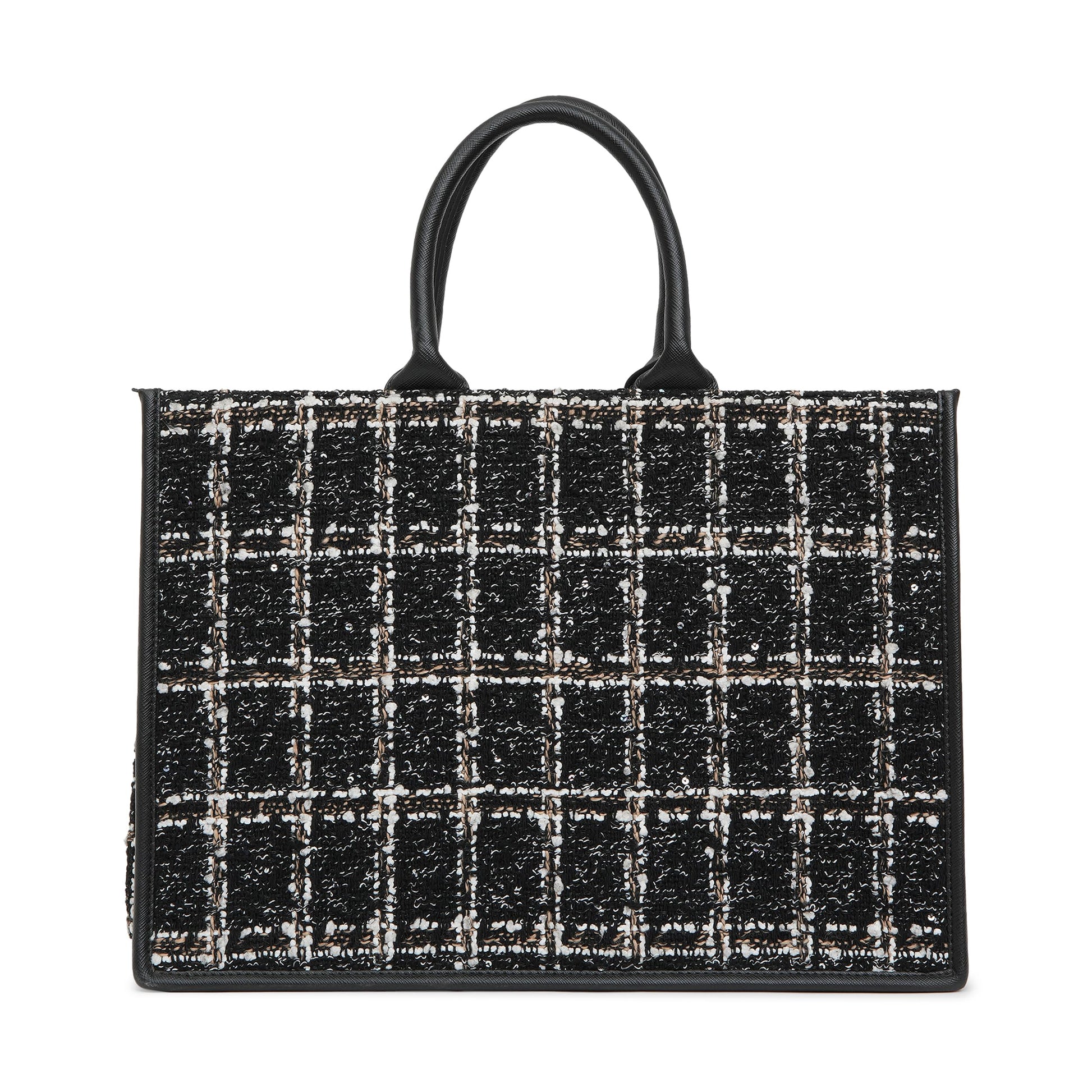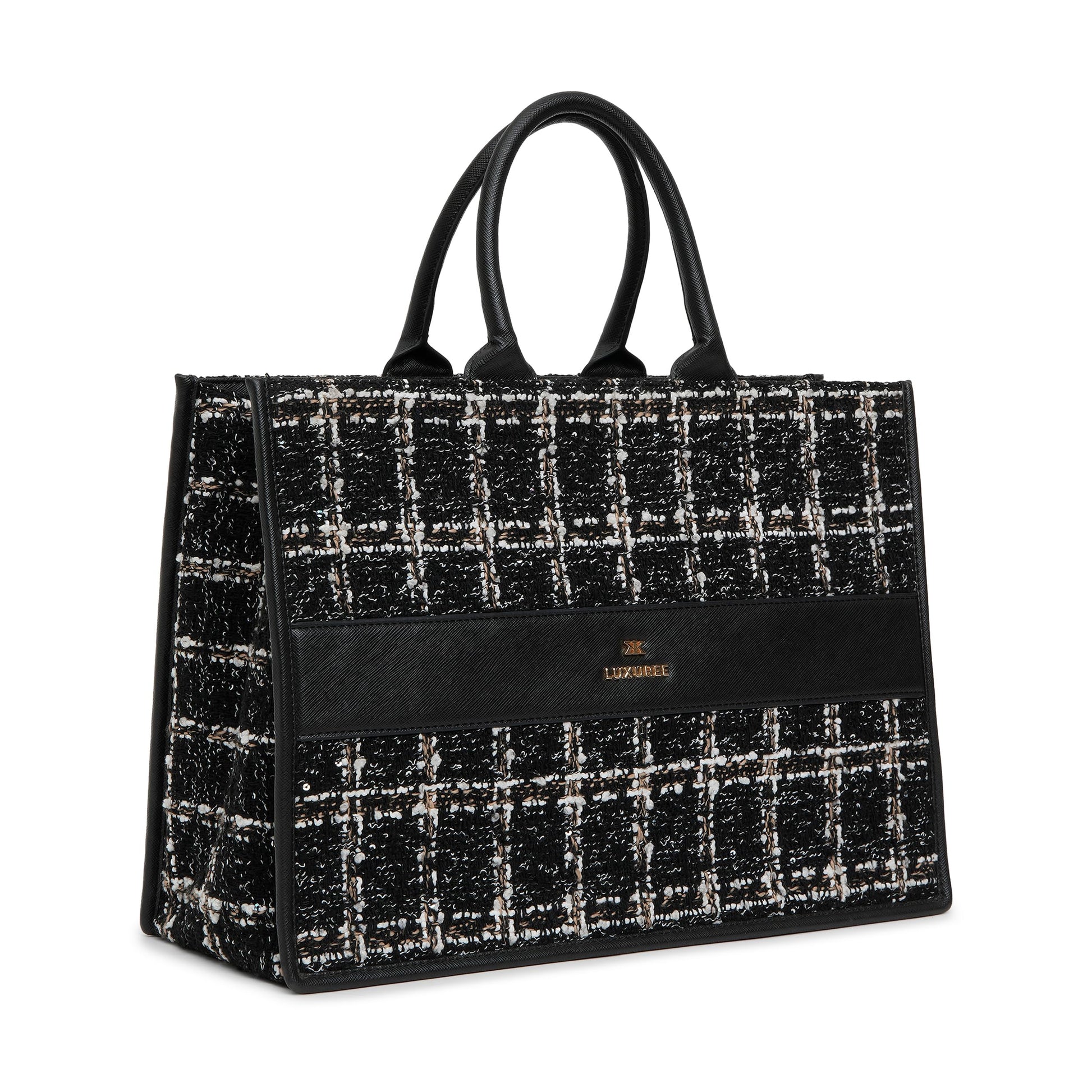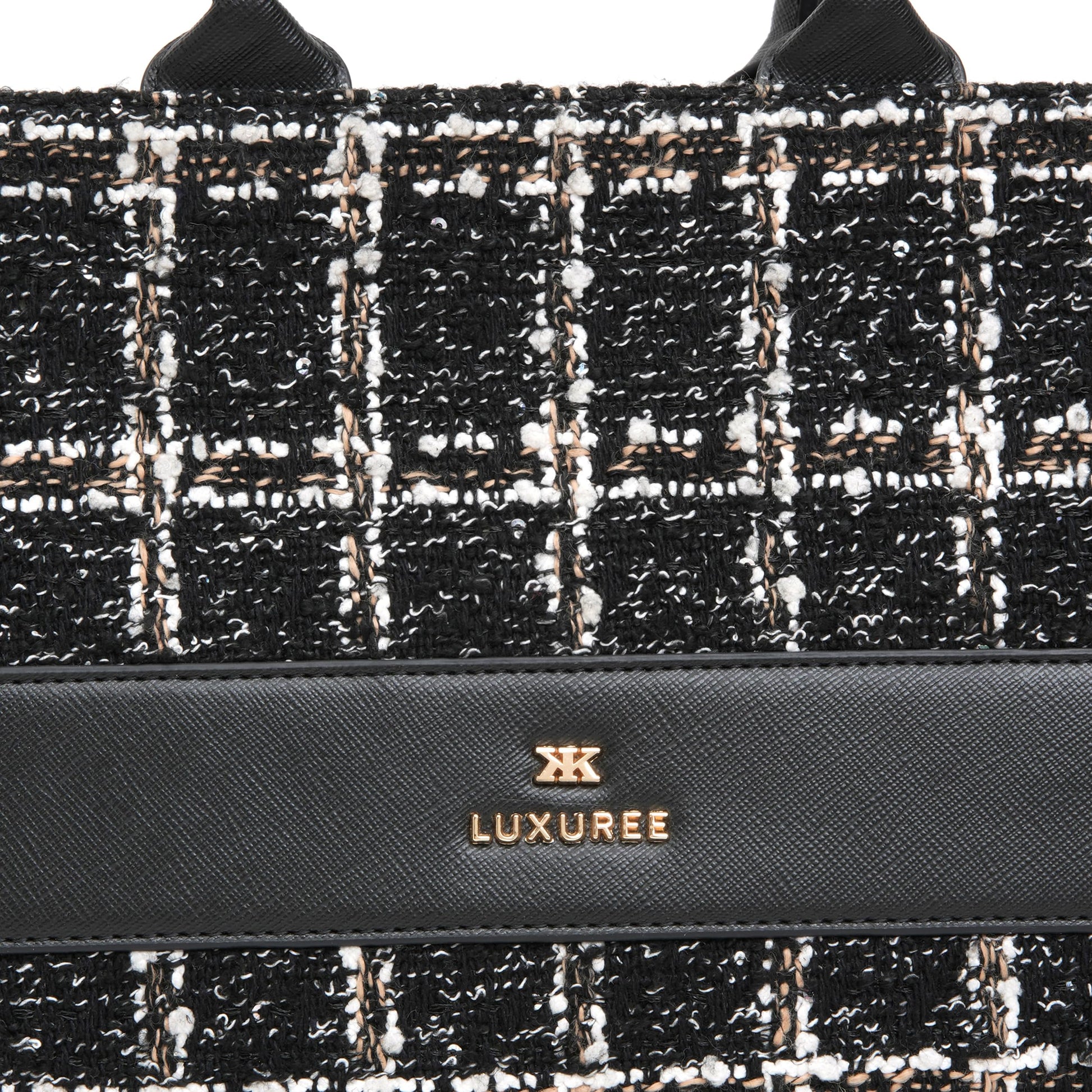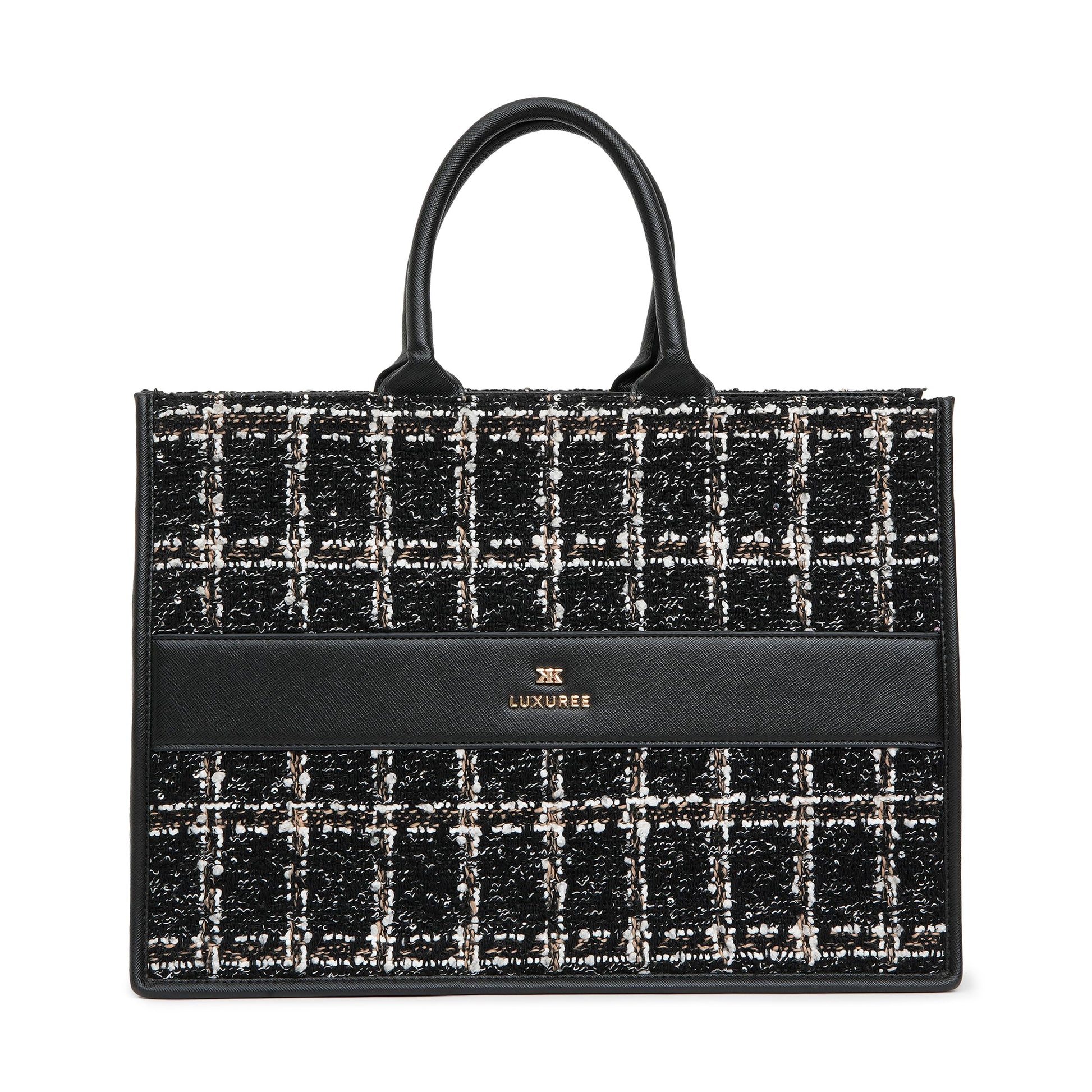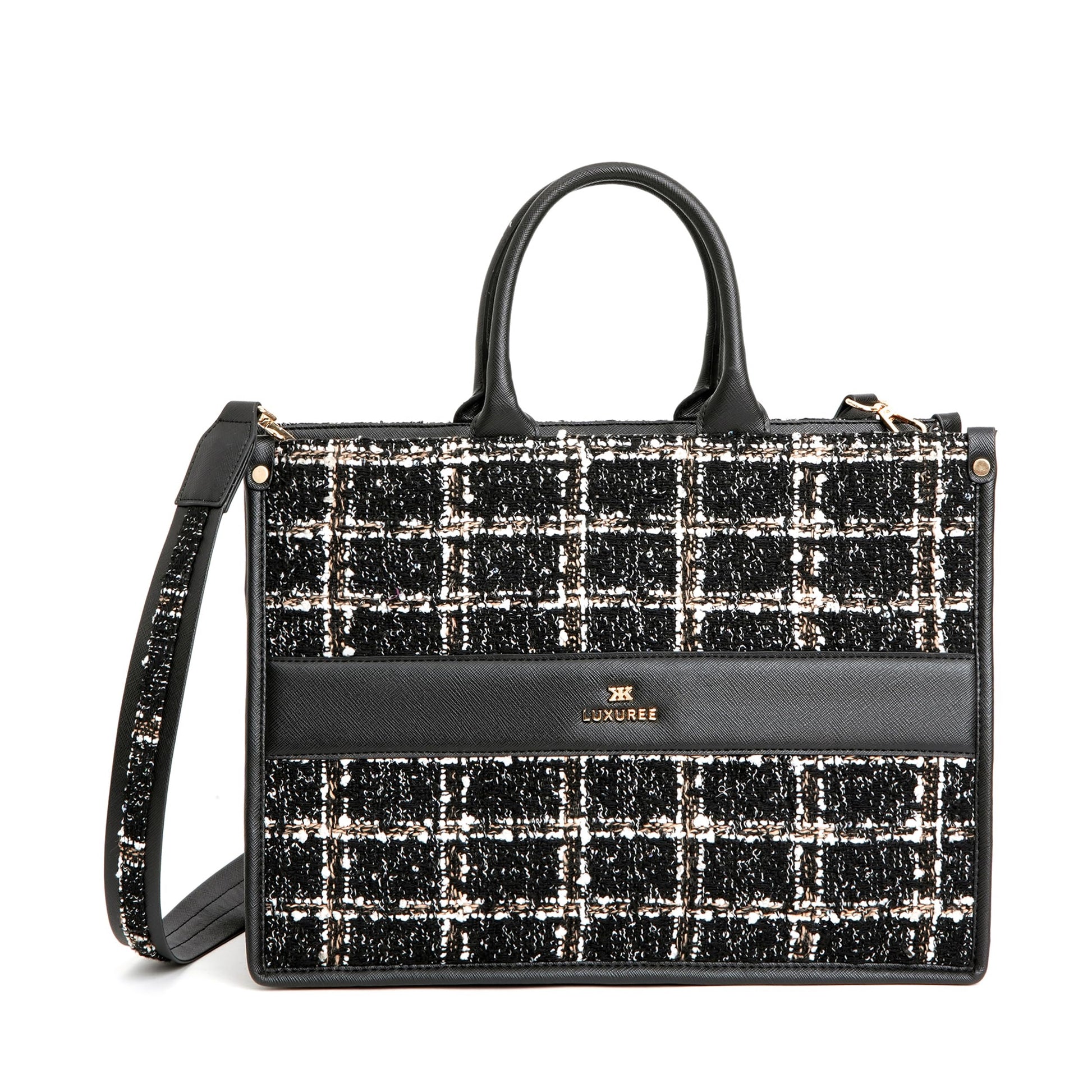 - Material & Design : The KLEIO Tweed Tote Handbag from the Luxuree Collection is made from high-quality vegan leather for lasting durability and luxury. Its sleek design and saffiano texture add a sophisticated touch, perfect for any professional outfit.