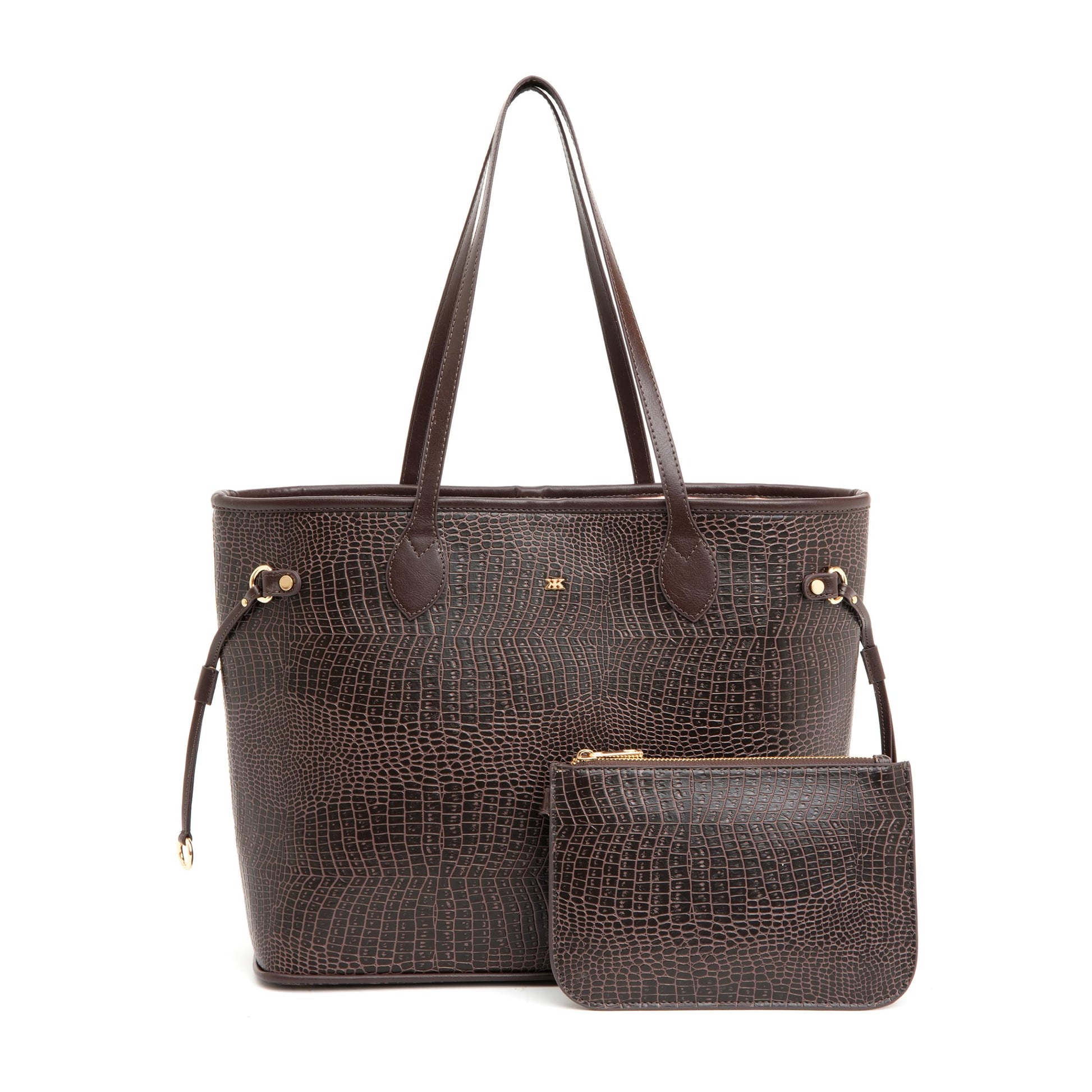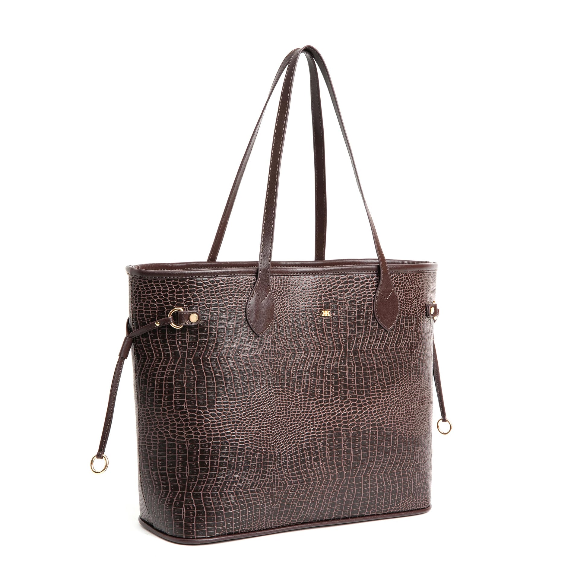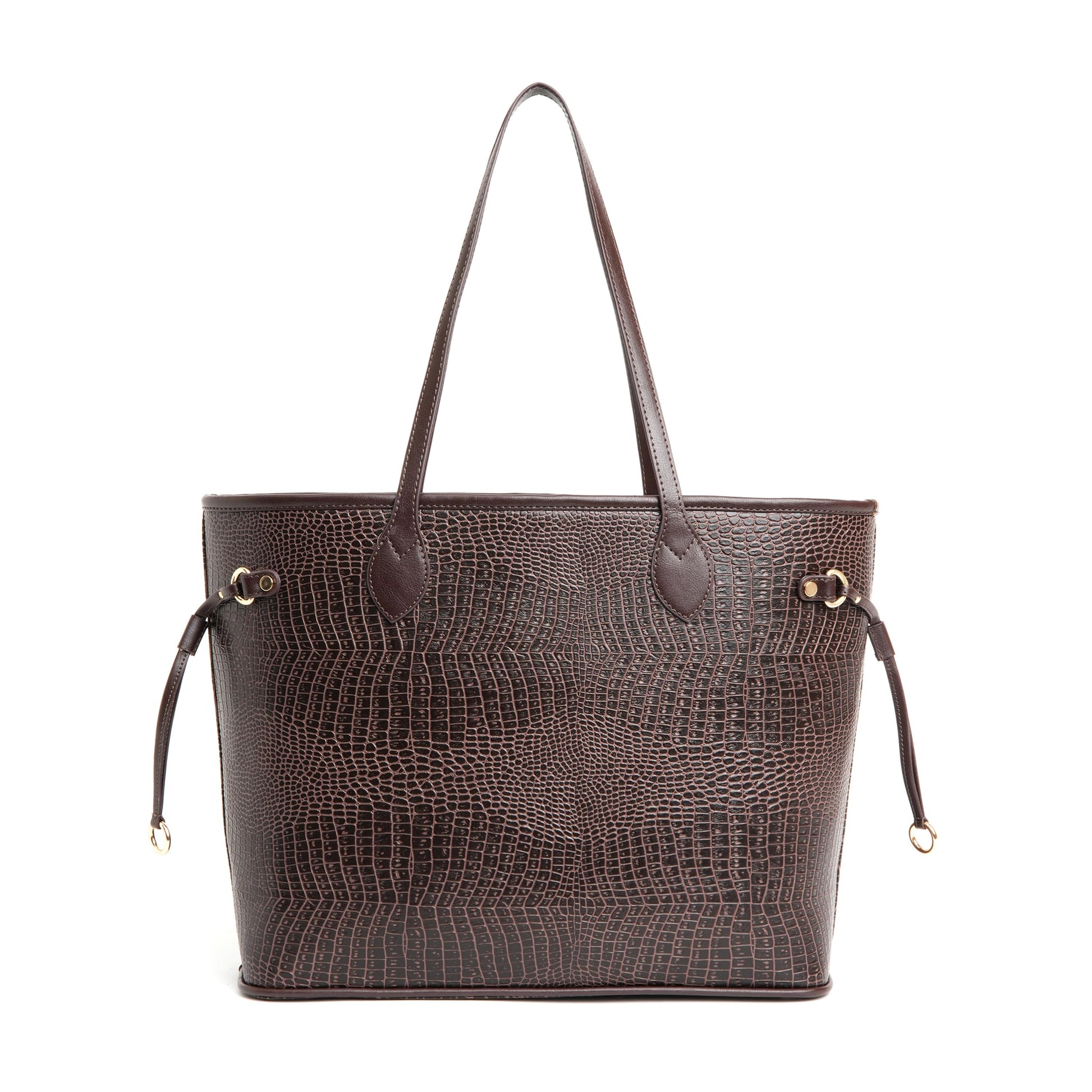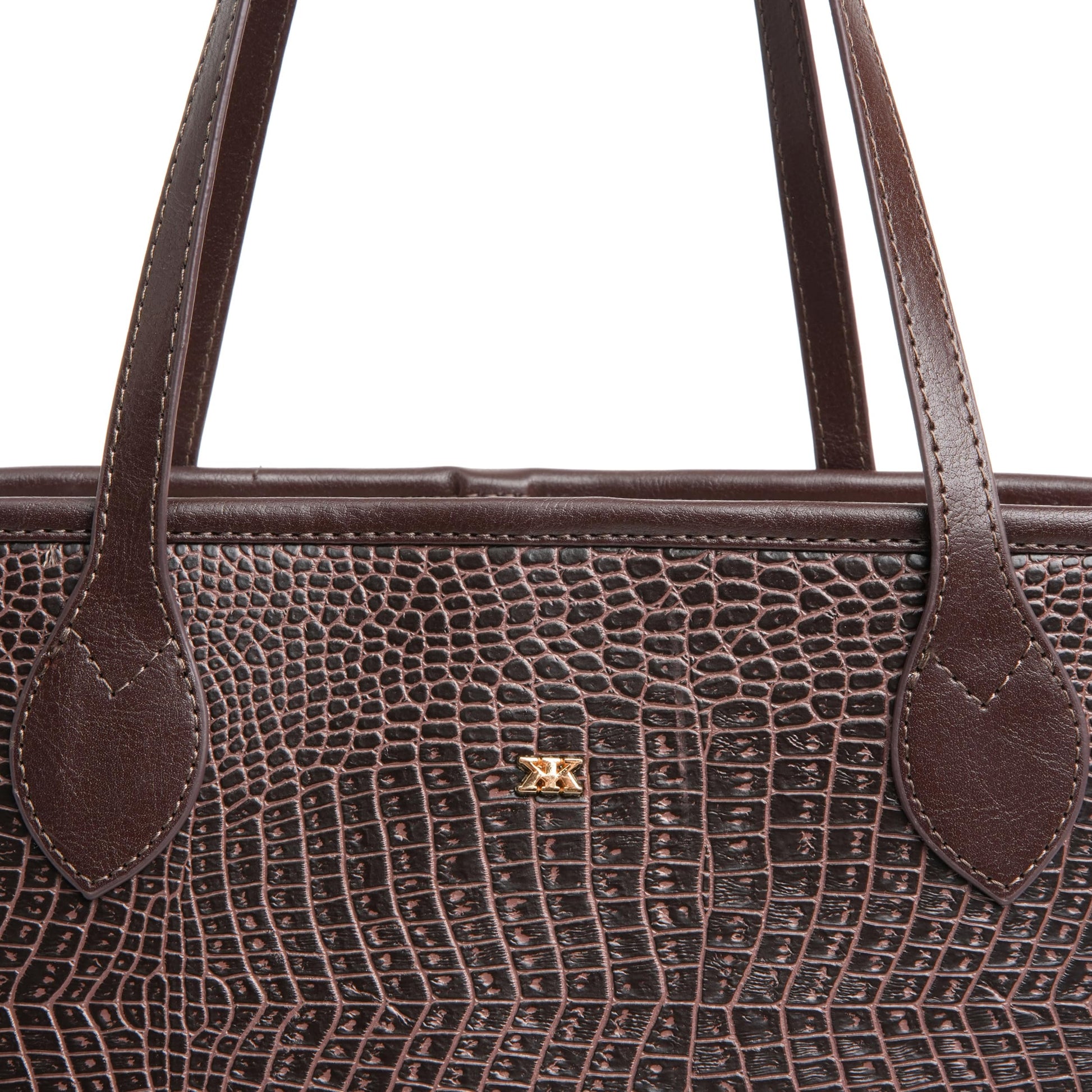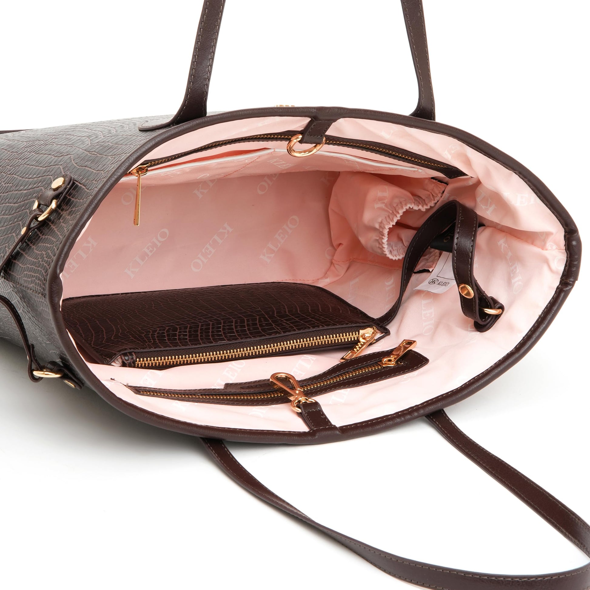 KLEIO Vegan Leather Croco Embossed Carry It All Tote Shopping Bag for Women (BROWN)