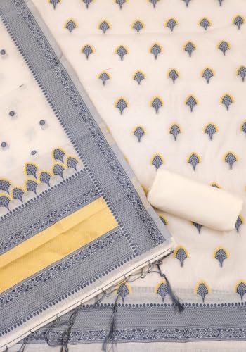 Leeli Peeri Designer Women's Grey Handloom Banarasi Resham Cotton Unstitched Dress Material(805PDM2)