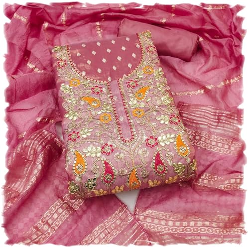 Leeli Peeri Designer Women's Simmer Silk Embroidery Work Unstitched Salwar Suit Dress Material