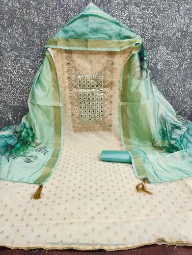 Leeli Peeri Designer Women's Simmer Silk Mirror Embroidery Work Unstitched Salwar Suit Dress Material
