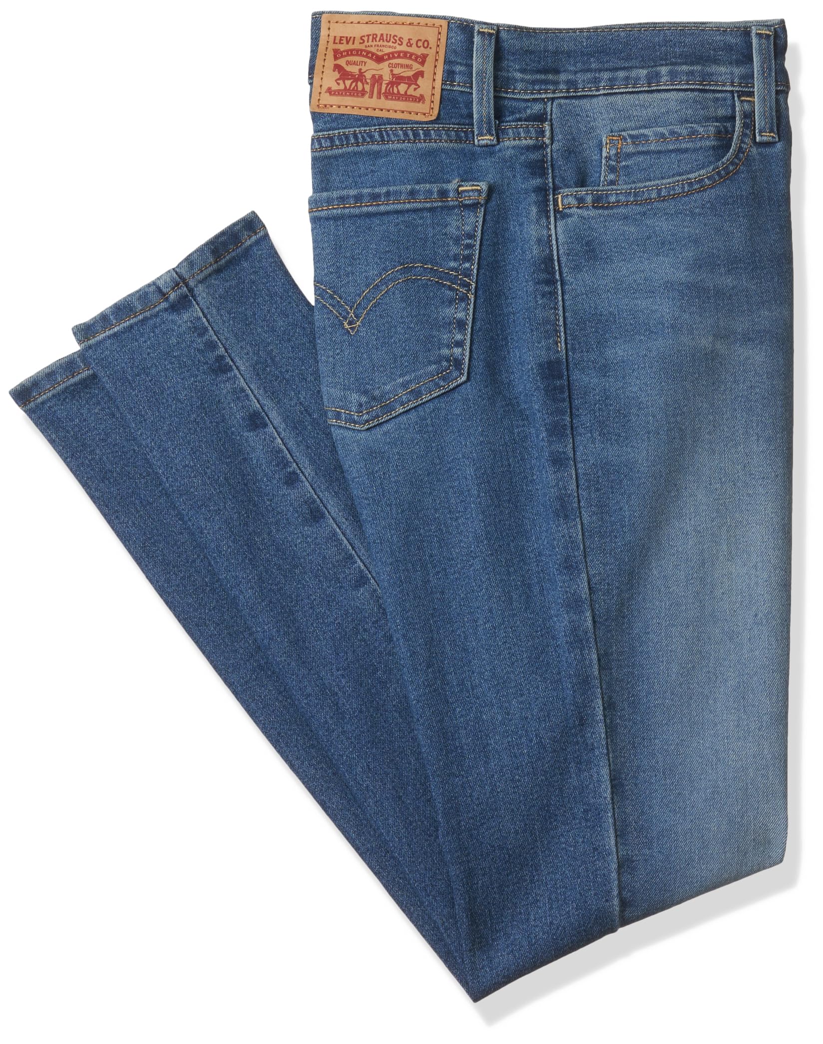 The super skinny, ultra-flattering fit, to give you a lengthened look. It's skinny with maximum comfort, made with a 98% cotton so that you don't have to sacrifice style for comfort. This must-have solid, blue denim is crafted with the right amount of stretch, making it exceptionally comfortable to wear and giving room for comfort with style. Team up these 710 super skinny pair with a casual shirt and classic sneakers for a flattering look. 1. Mid rise 2. Slim through hip & thigh 3. Stretch denim fabric to hug your figure well