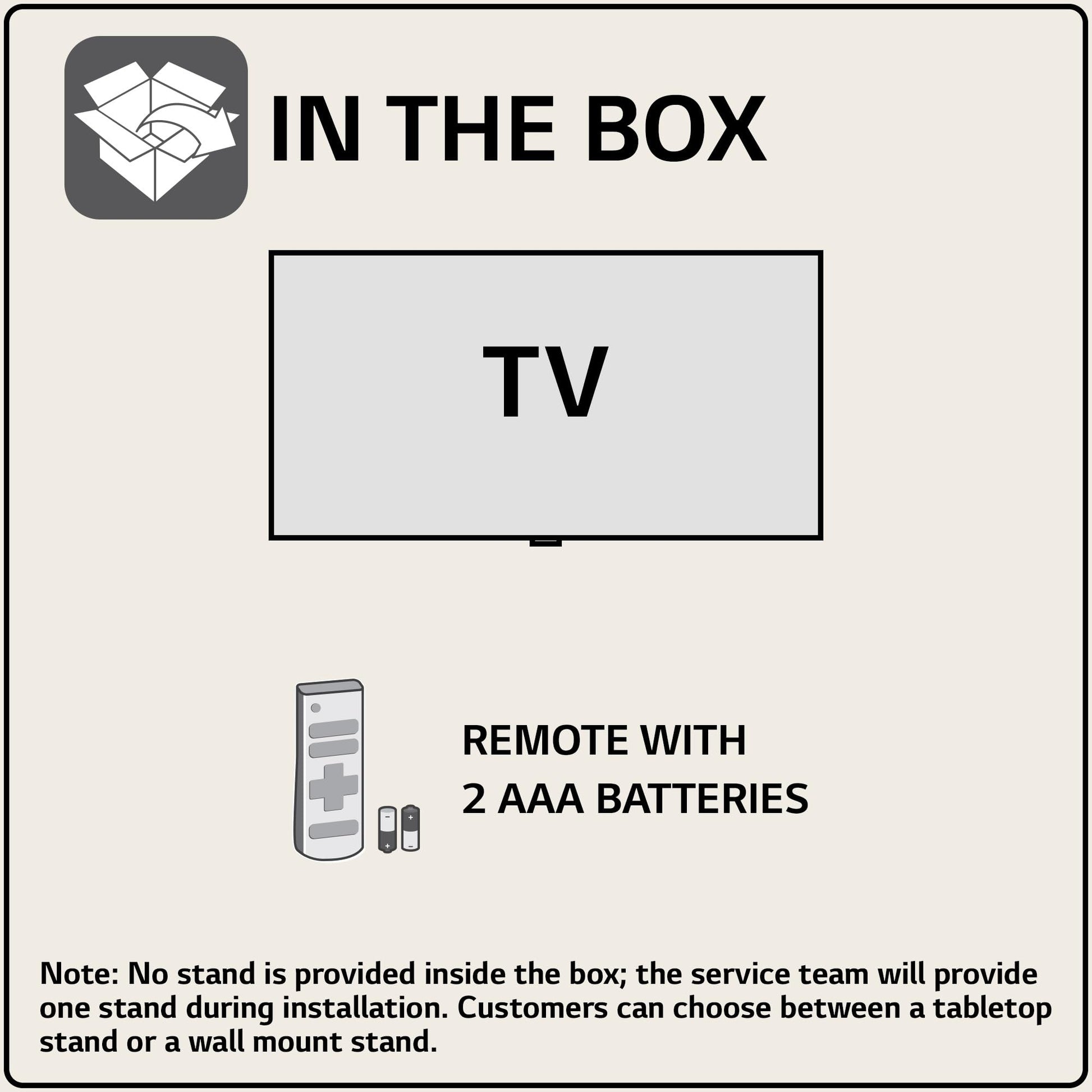 • Additional information: Brand Warranty can be availed using amazon invoice and User manual can be accessed from brand website | Included Components: 1 OLED TV, 1 Magic Remote with 2AAA Batteries (Note: LG does not include a TV stand inside the box. A free wall mount or table-top stand will be provided and installed by LG’s technician during installation. Customers can choose one option at the time of service.)