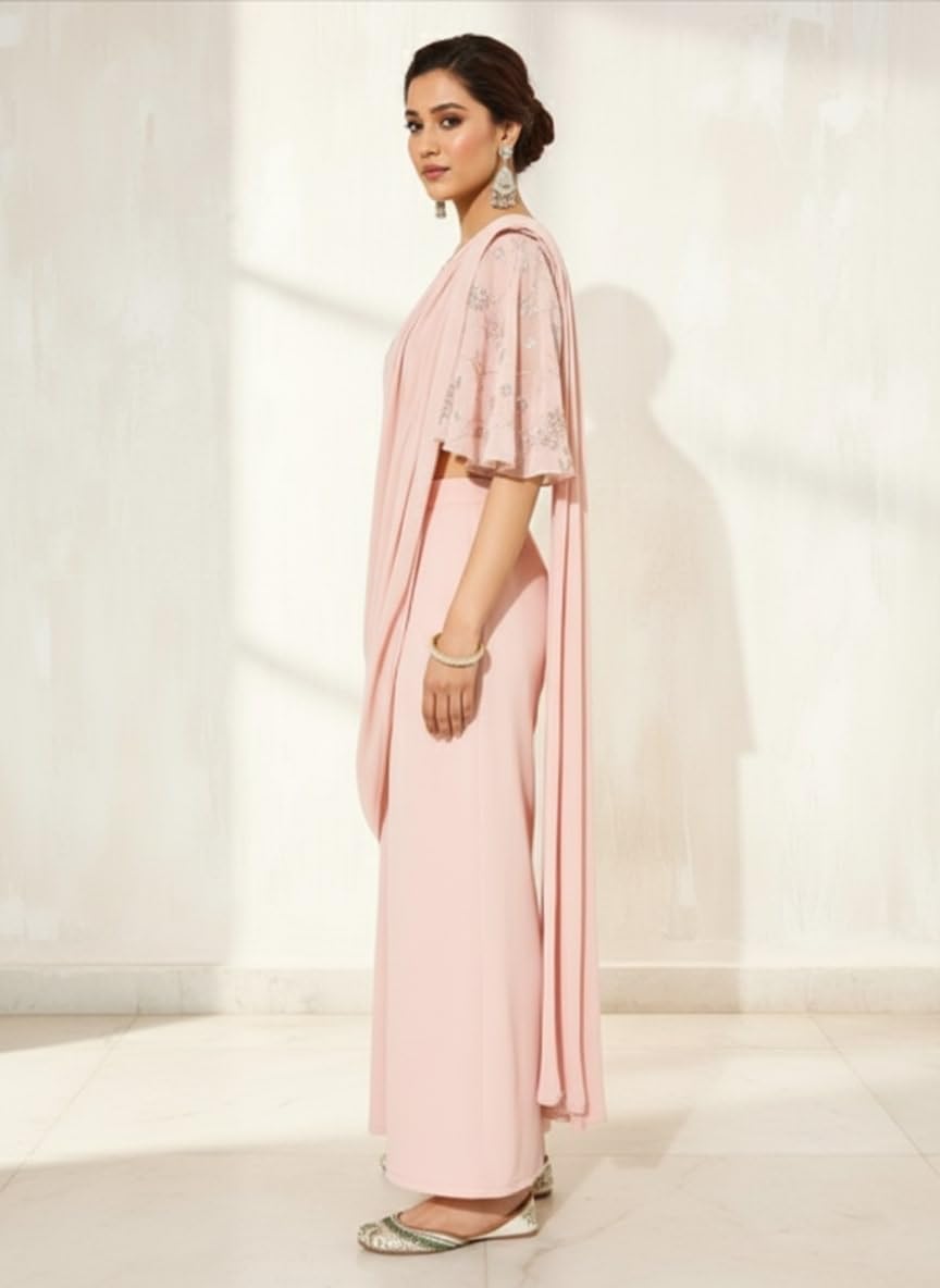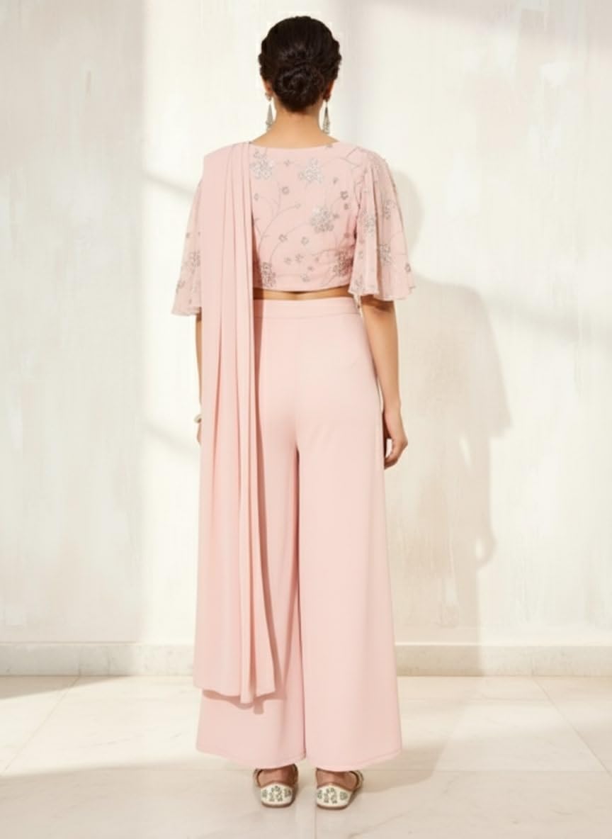 Pink Embroidered Georgette Saree With Stitched Blouse