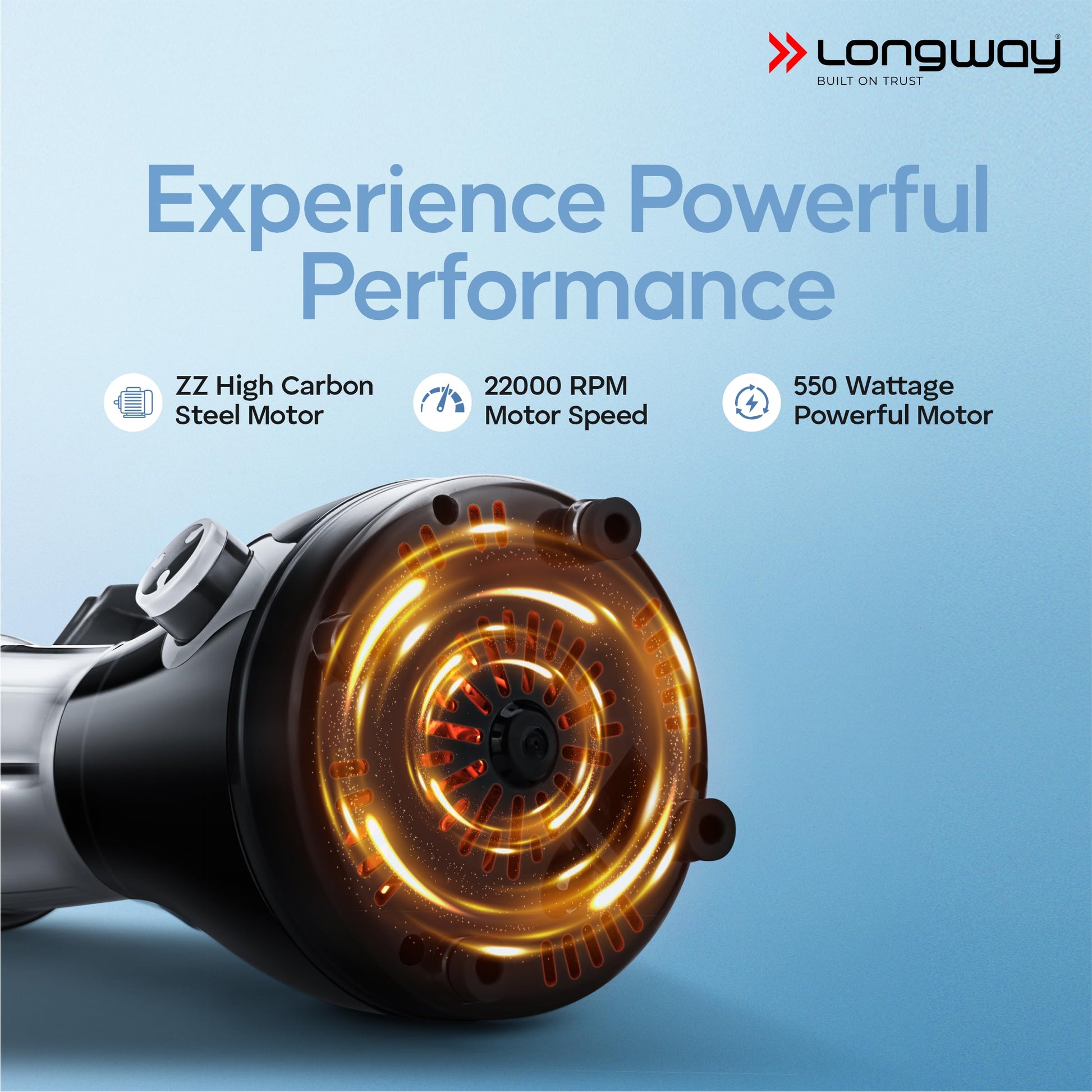 - Super Energy Efficient Motor: Elegant Design Comprises the energy efficient technology from Longway. Motor comes with ZZ High Carbon Steel Motor, Gloss Finish with superb performance.