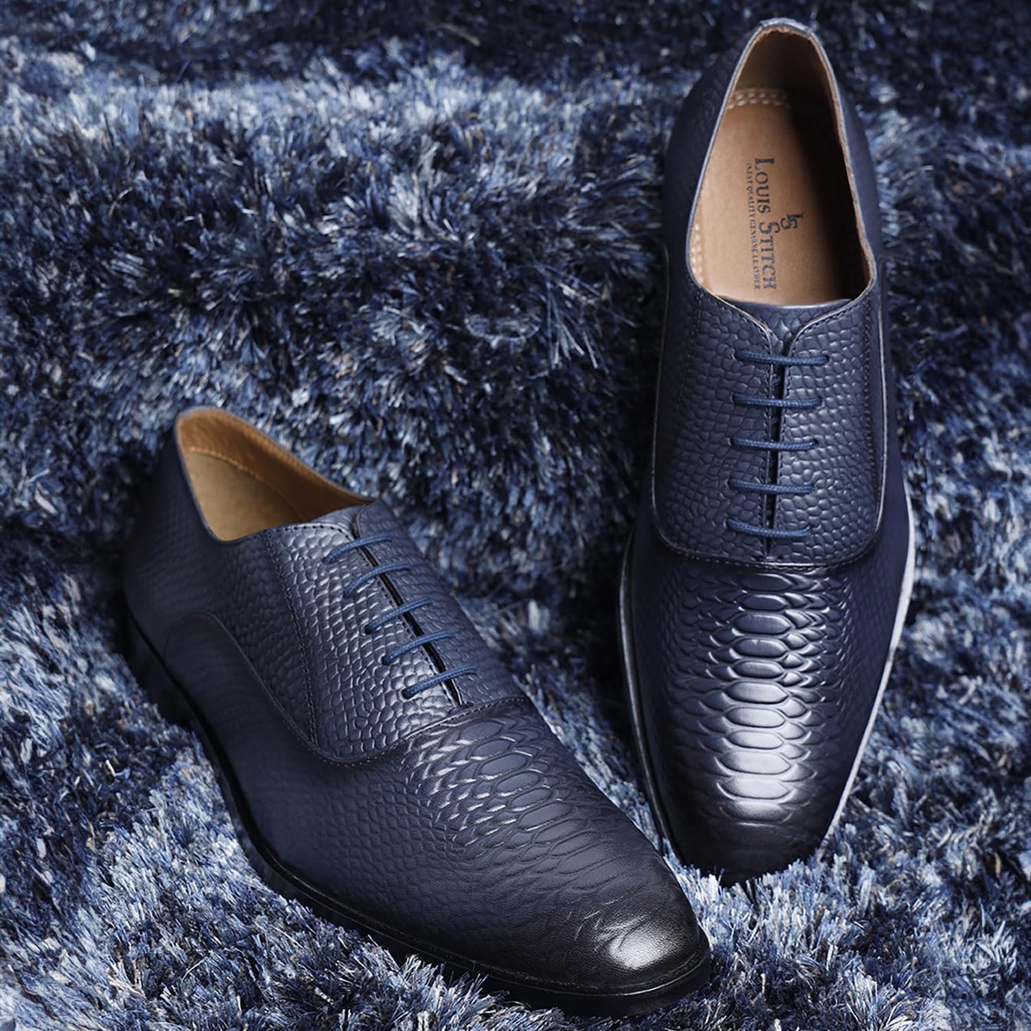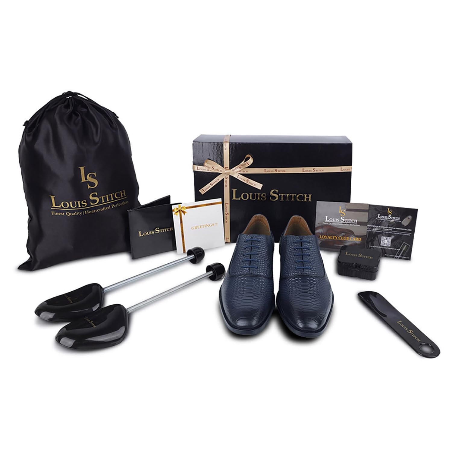 LOUIS STITCH Formal Shoes for Men | Handcrafted Derby in Authentic Italian Leather | Unique Design | Lace-Up for Business Federal Blue | UK Size 8 (EUSNBU)