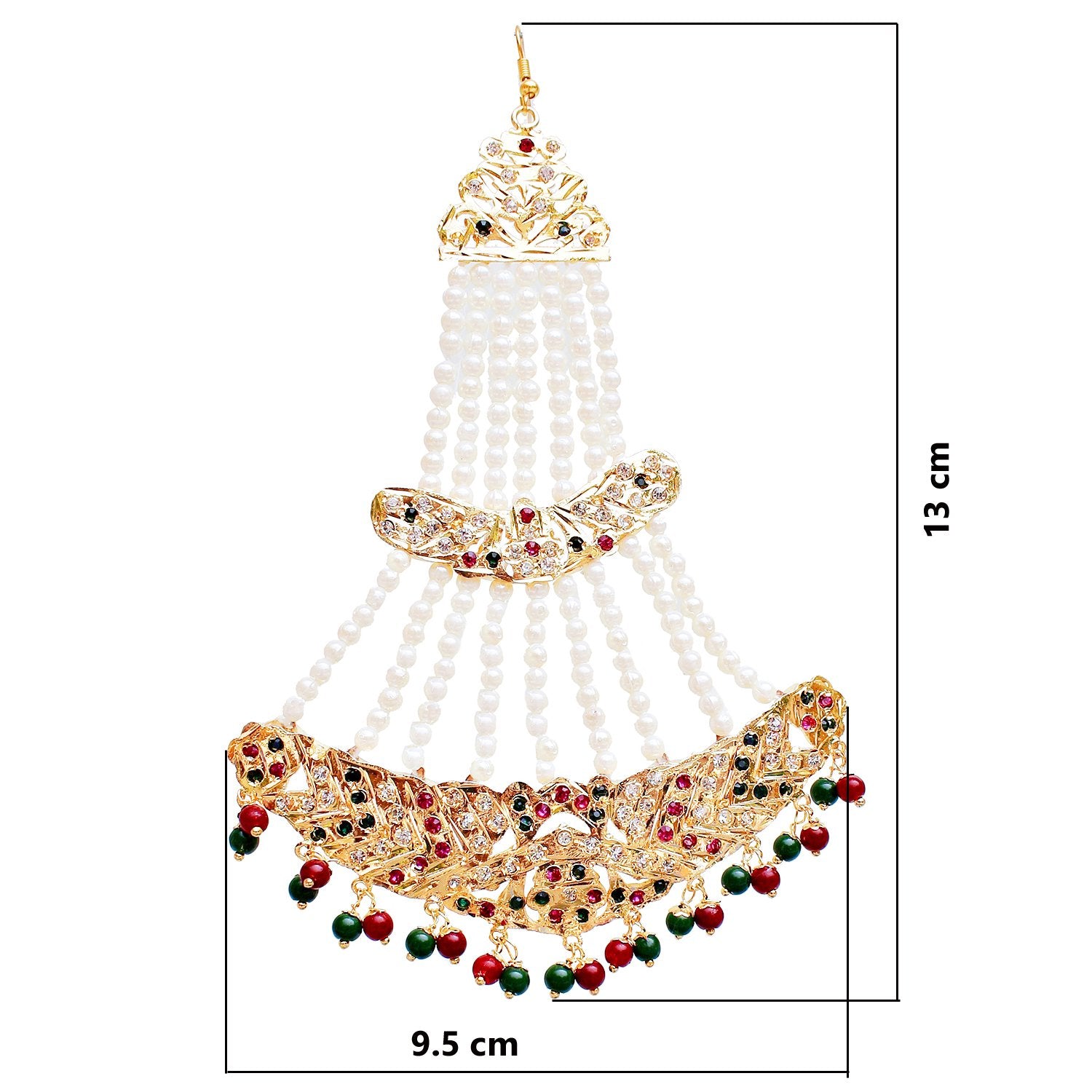 Lucky Jewellery White Magenta Green Stone Multilayered Pearl Kundan Passa for Women (660-CKN-C194-RG)