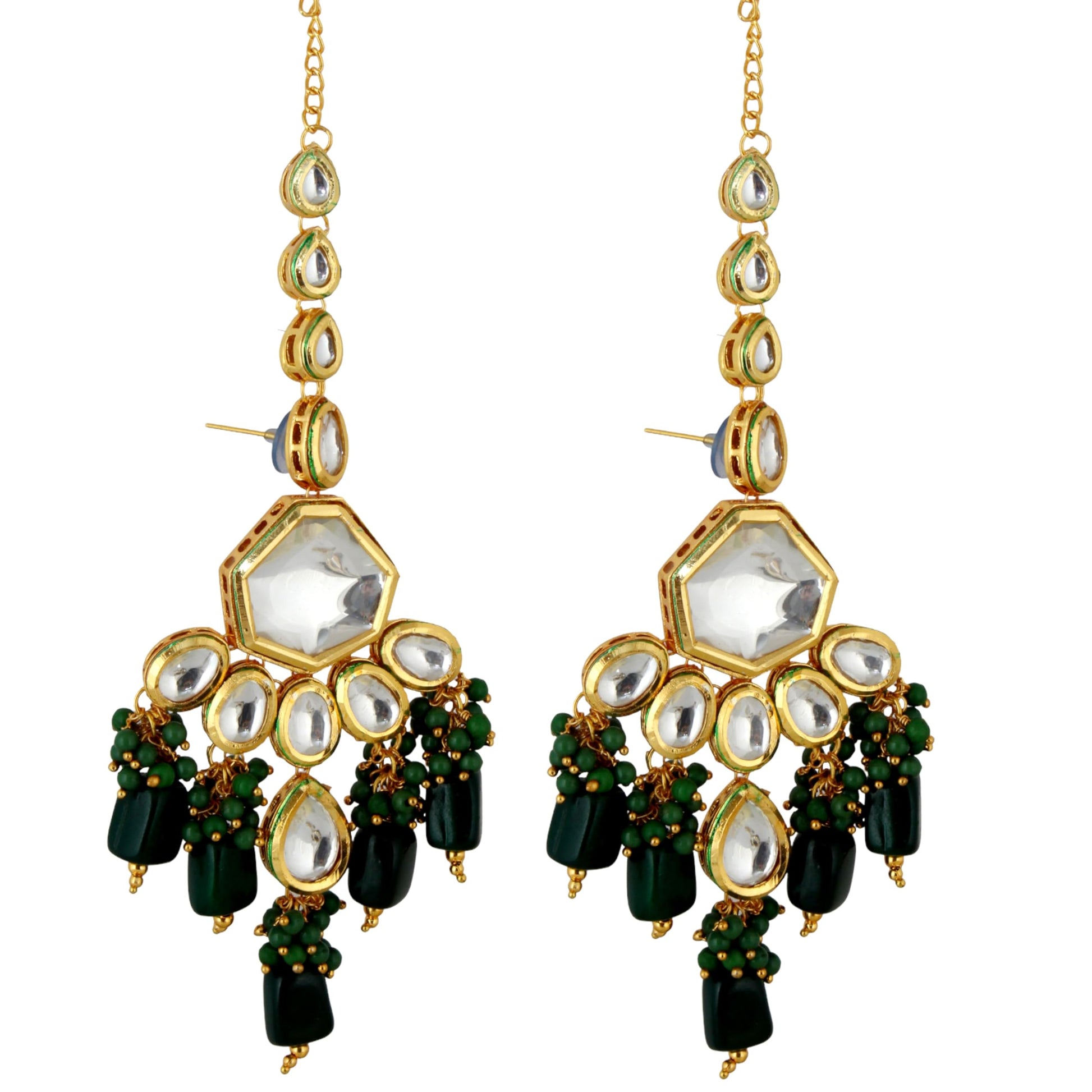 Lucky Jewellery Womens Back Meenakari 18k Gold Plated Green Color Tika Earring Combo Uncut Big Faux Kundan Choker Necklace Set (5910-M4SK-1574-G)