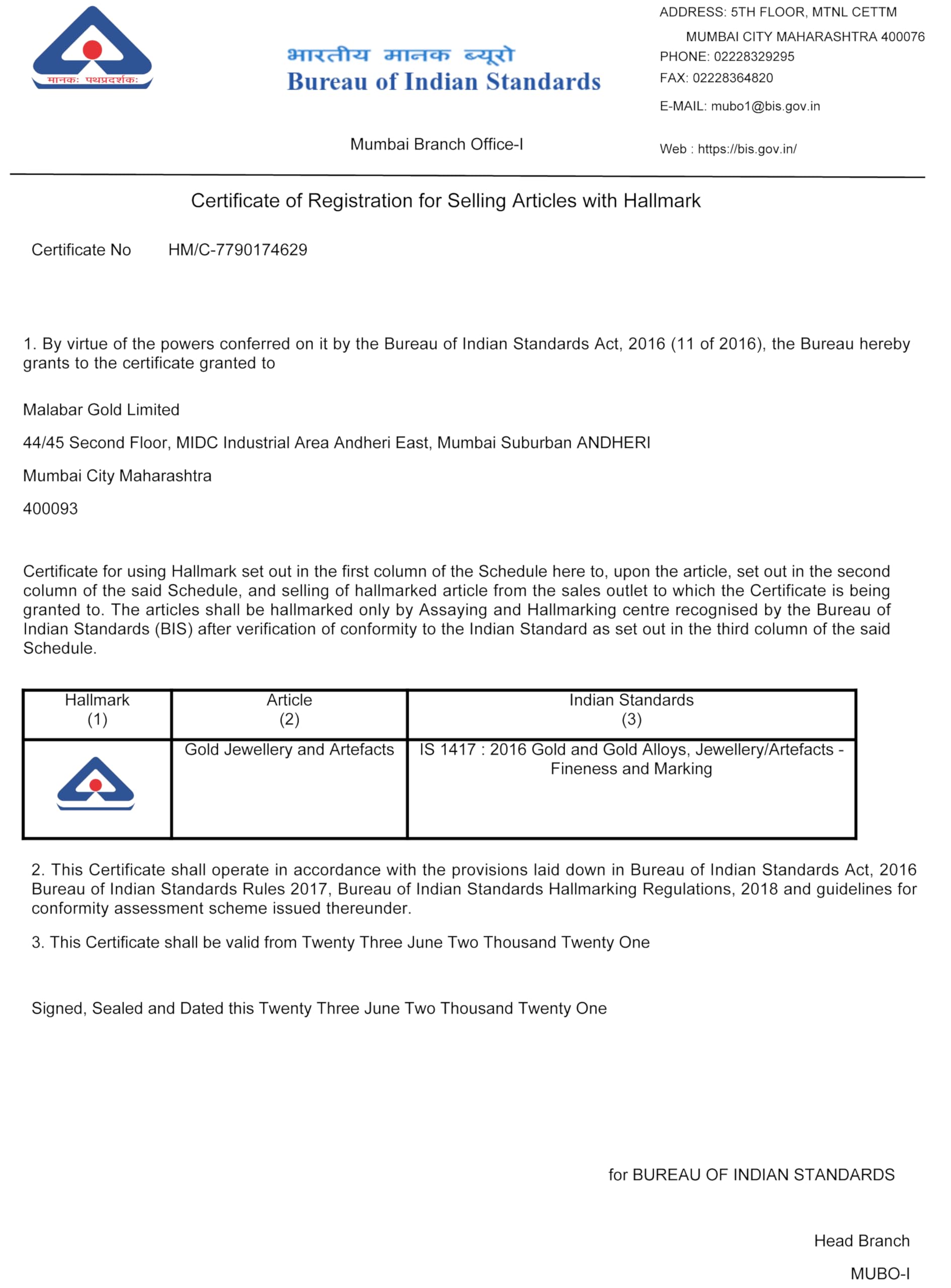 - Authenticity: This gold bracelet for women is made from 22k(916) purity BIS Hallmark HUID compliant gold. It's important to note that the BIS Hallmark is not provided as a separate certificate but rather it is inscribed directly on the product itself. HUID is not mandatory for products below 2 grams