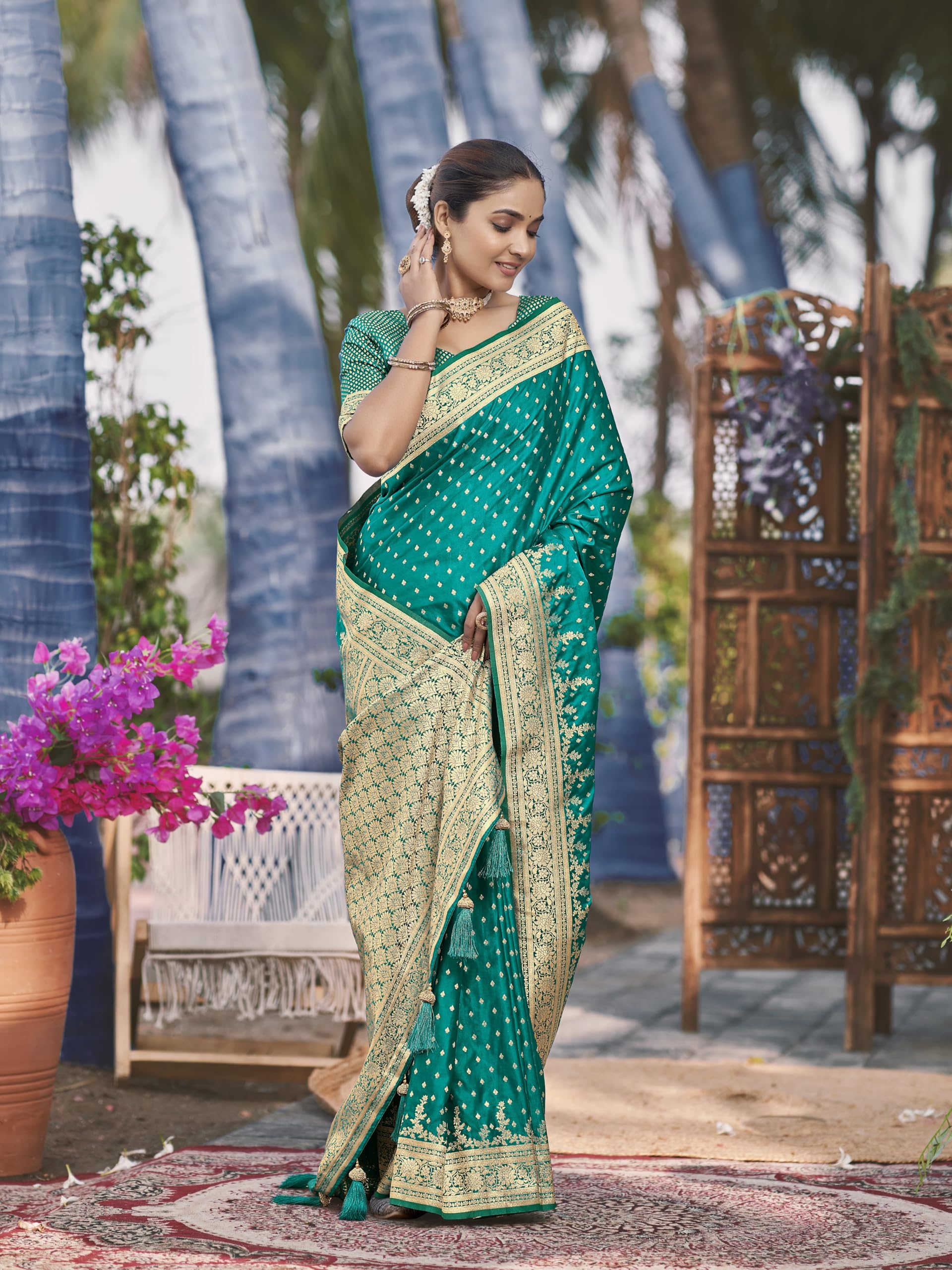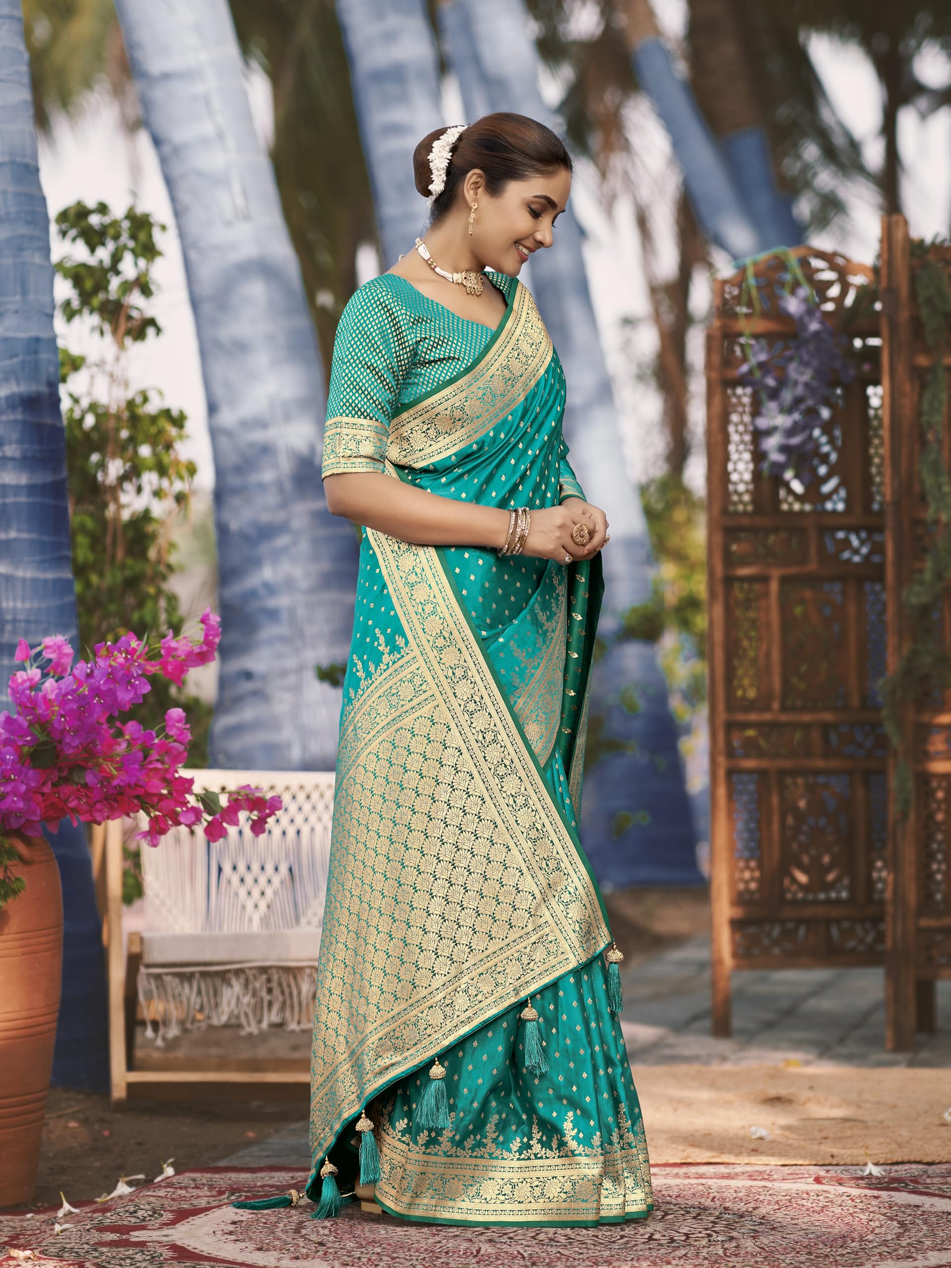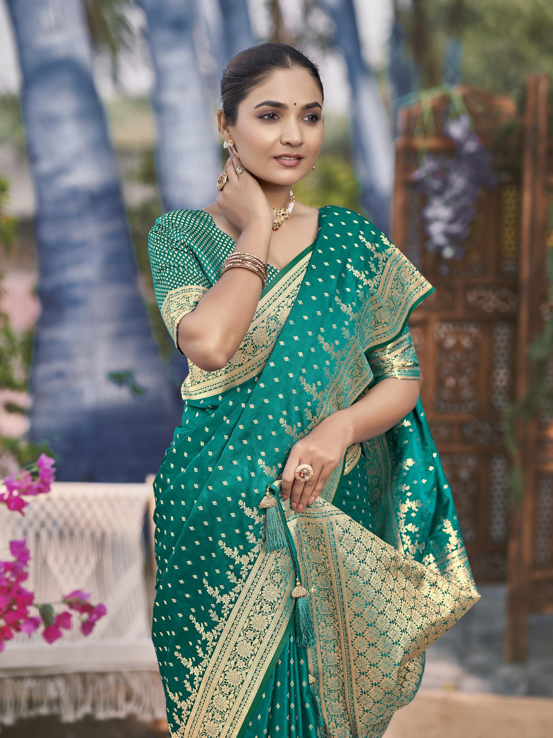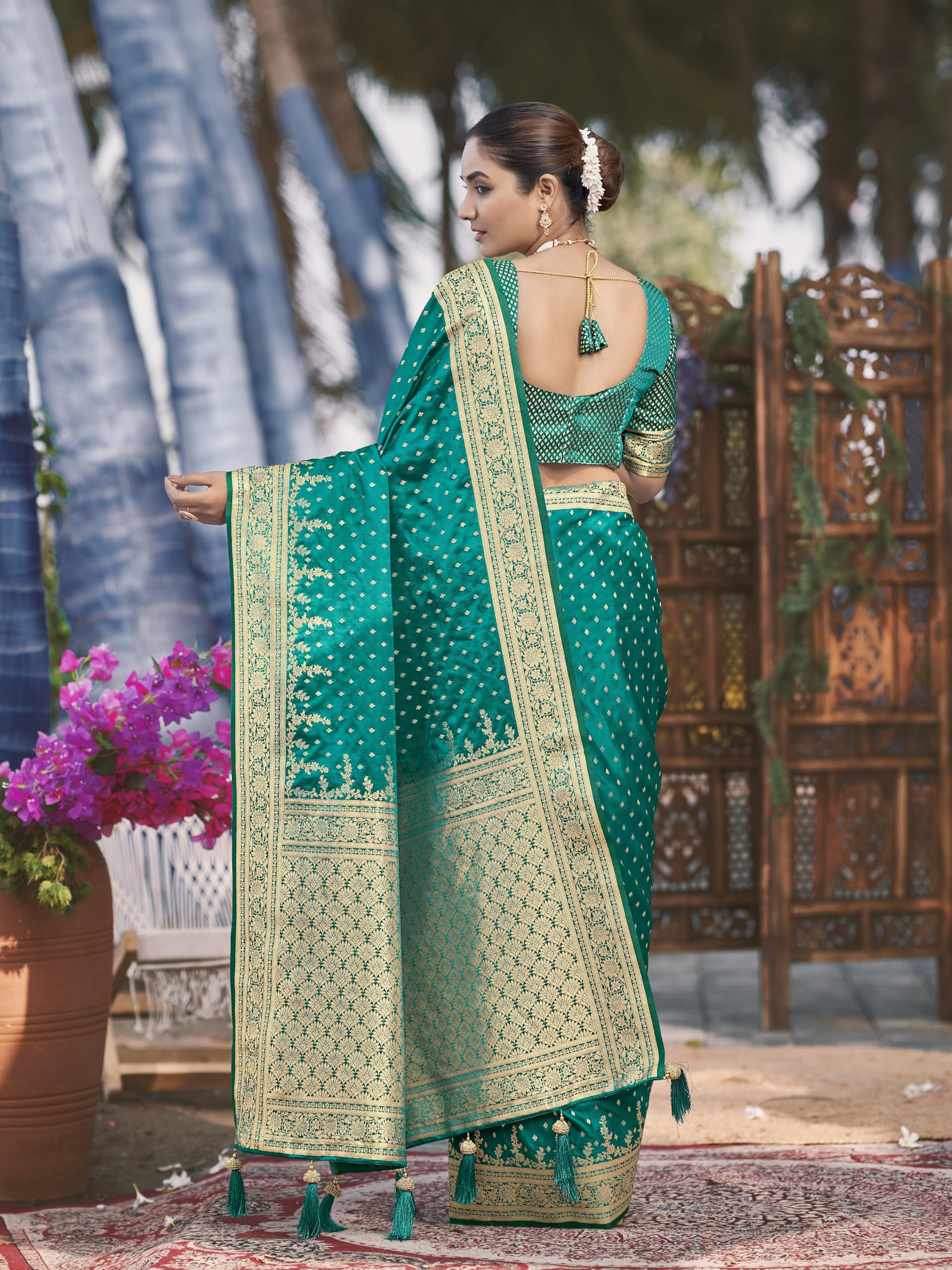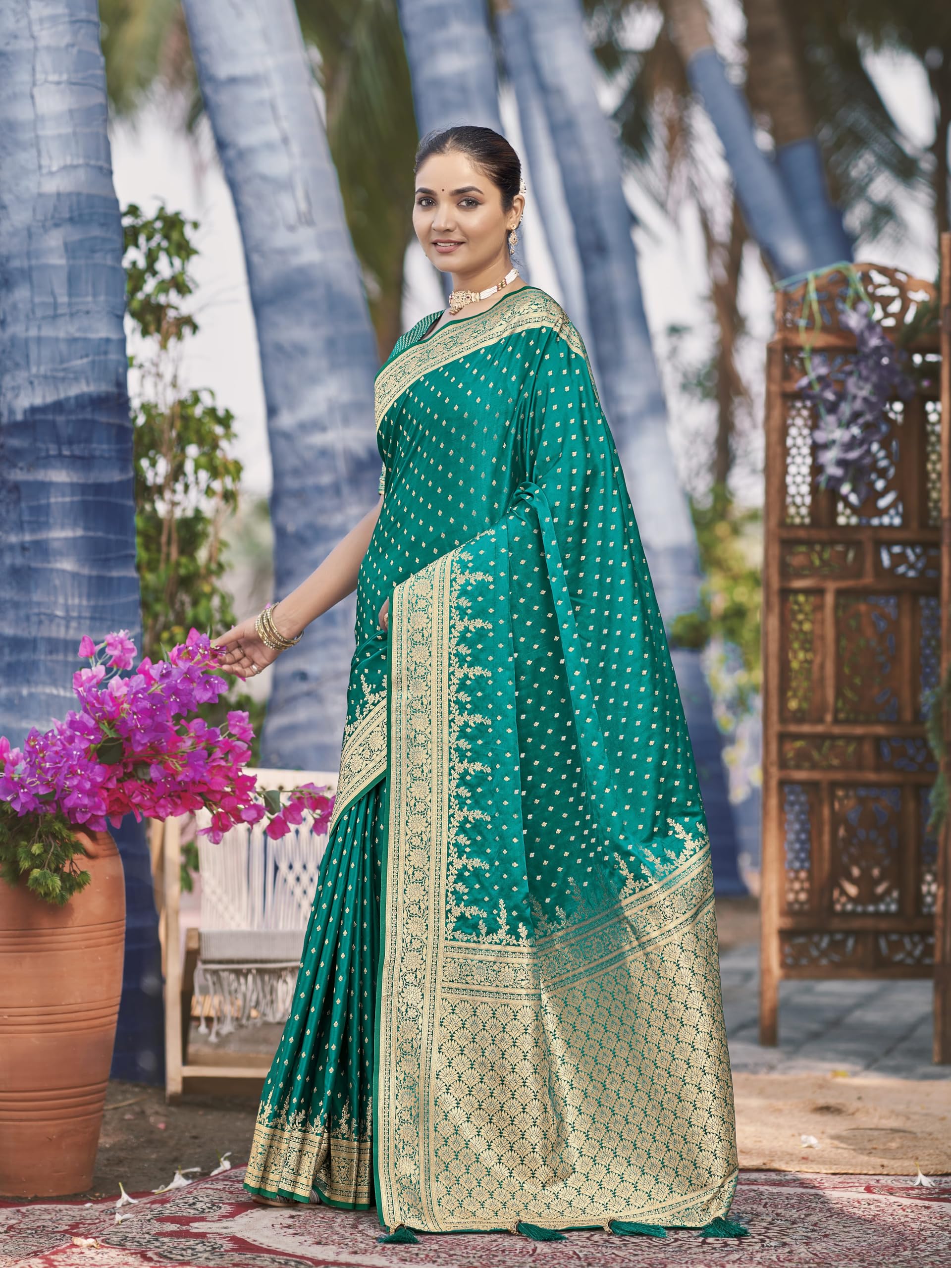- Saree Fabric: Banarasi Satin Silk , Blouse Fabric : Banarasi Satin Silk