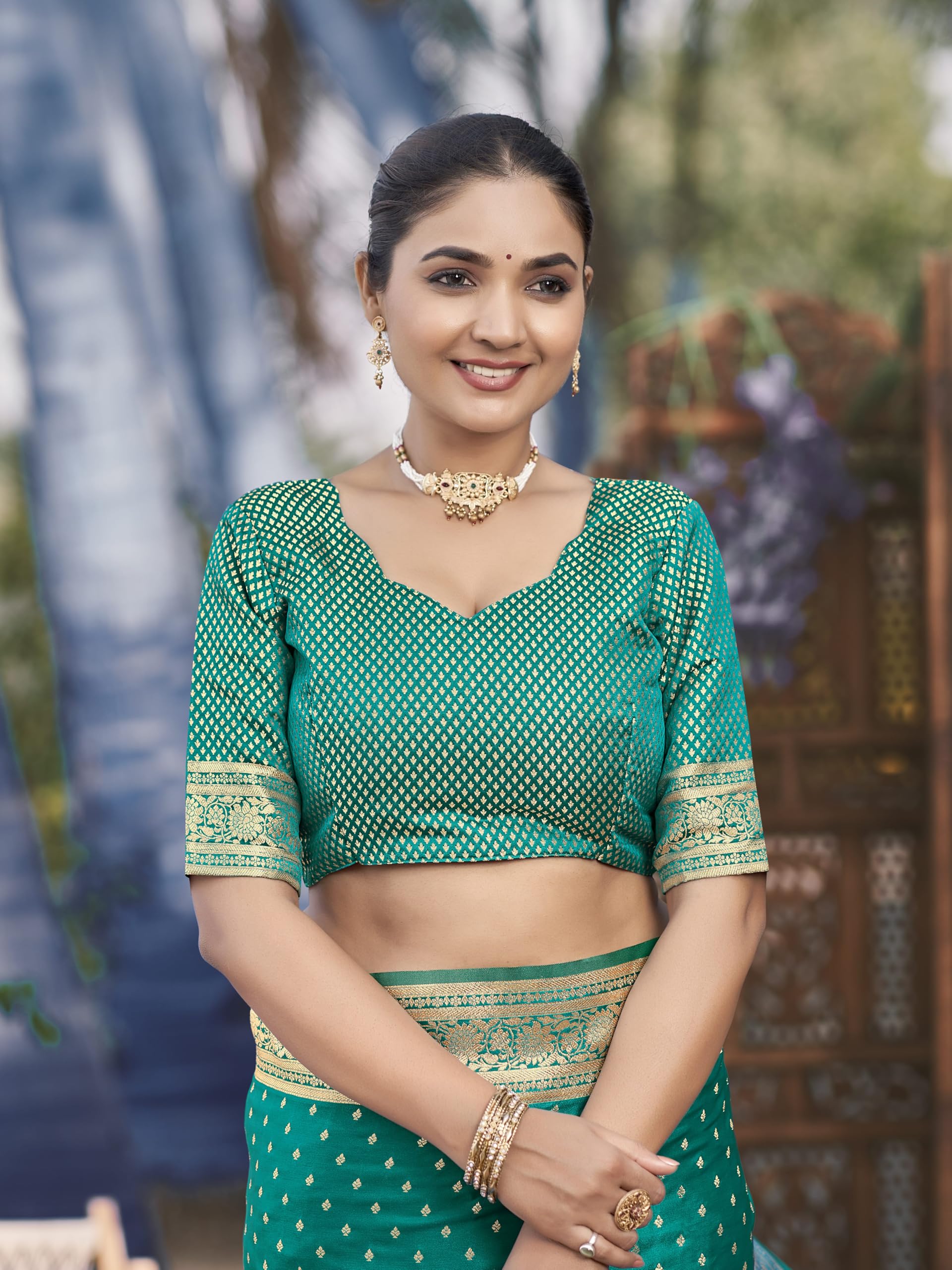 - Saree Color:Green, Blouse Color:Green