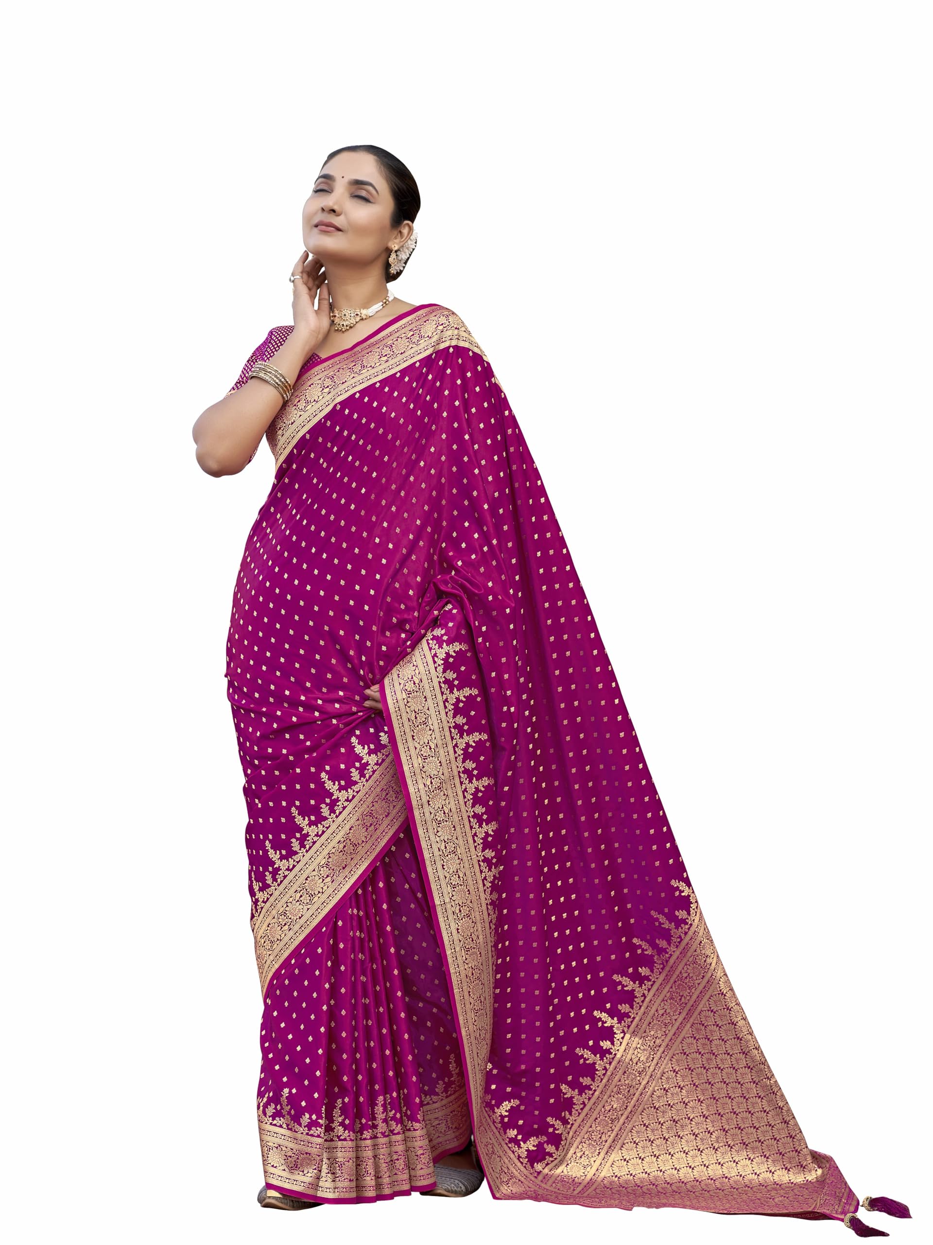 - Saree Fabric: Banarasi Satin Silk , Blouse Fabric : Banarasi Satin Silk