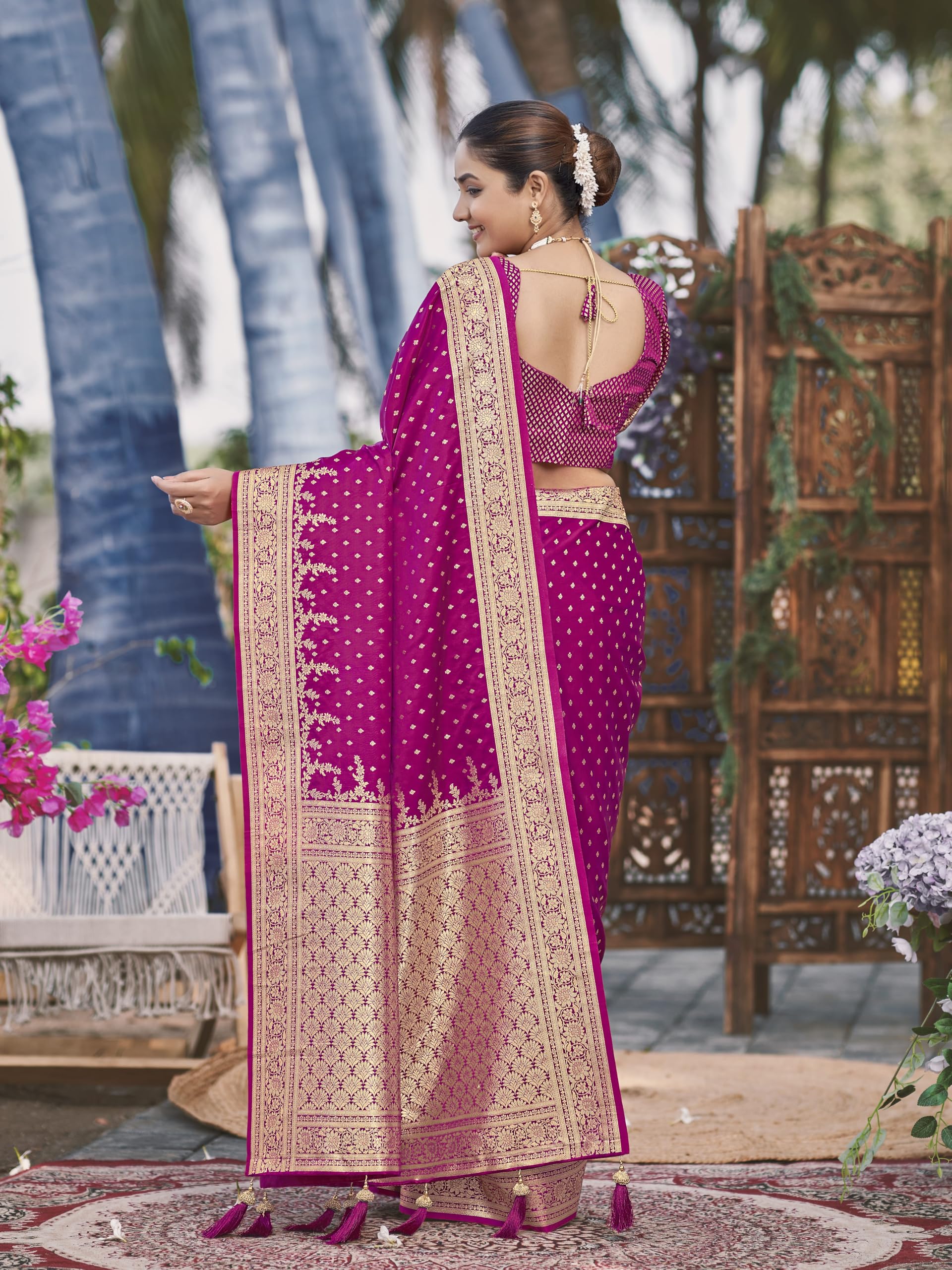 MANOHARI Women's Most Trendy Banarasi Satin Silk Woven Pink Saree With Heavy Jacquard Work Saree With Blouse Piece_MN1994