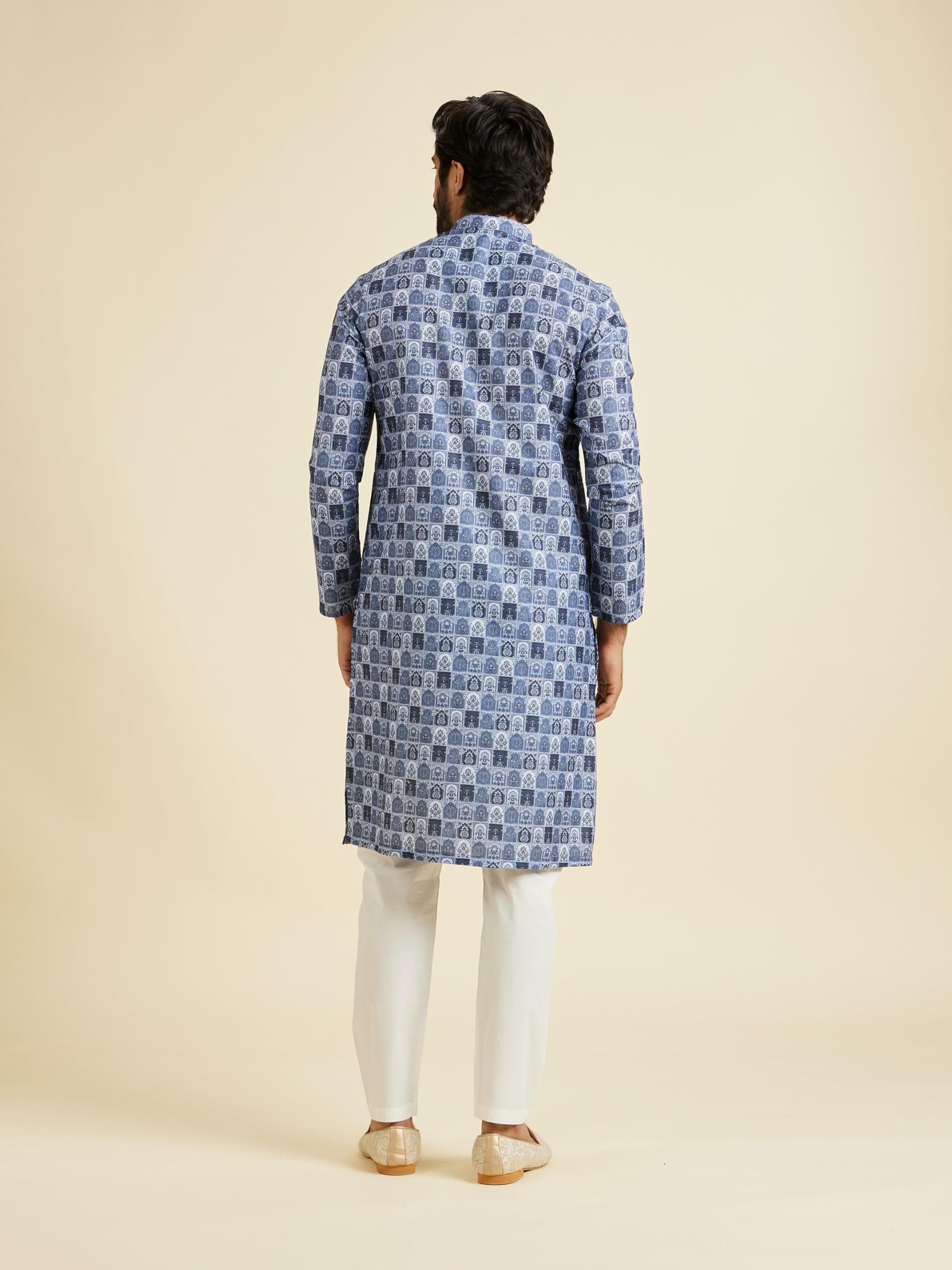Manyavar Men's Cotton Blend Printed Kurta Pyjama Set (Greyish Blue,S)