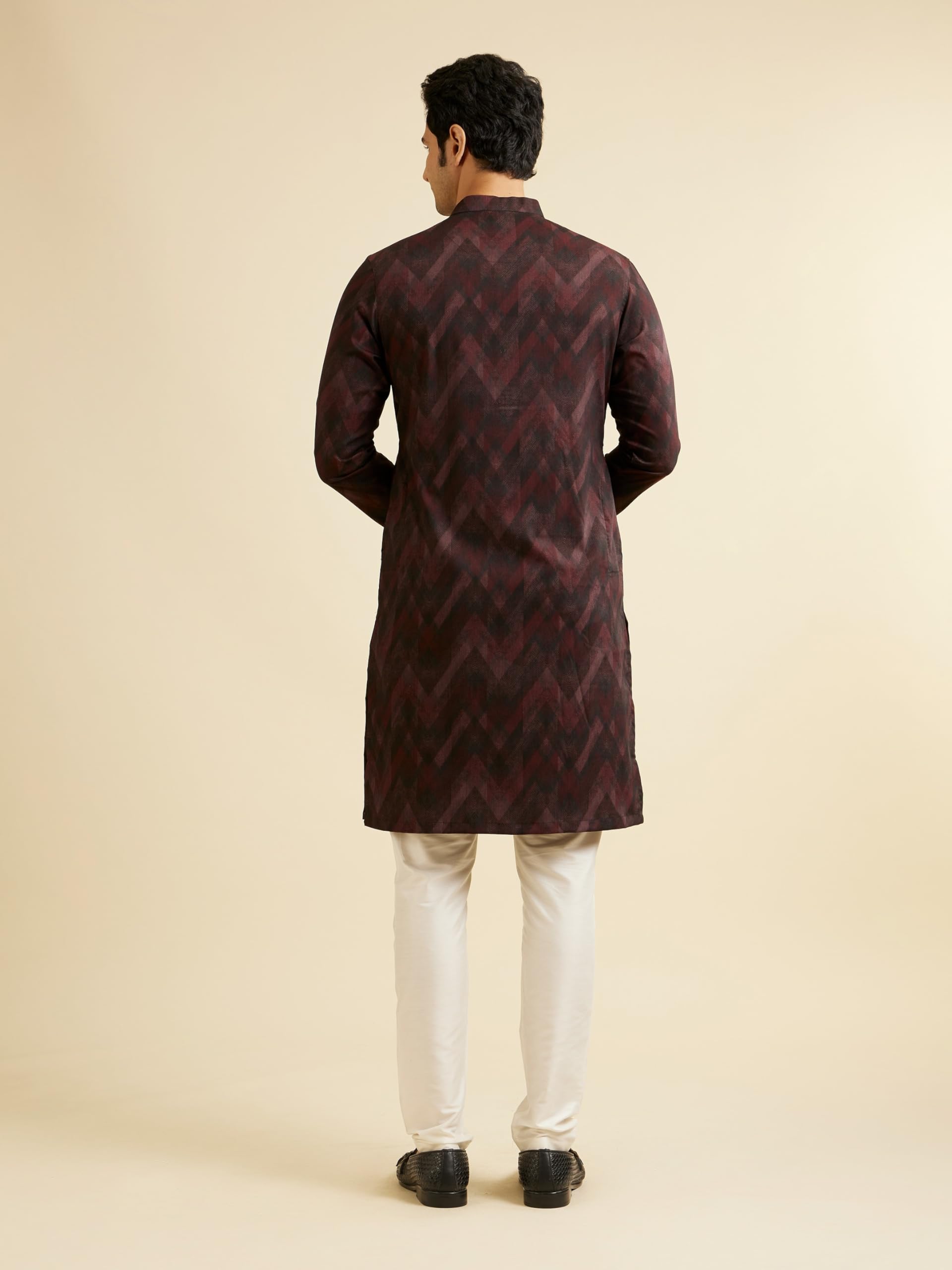 Manyavar Men's Spandex Chevron Patterned Kurta (Maroon,XL)